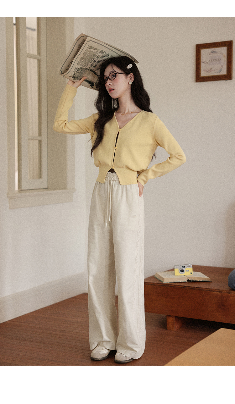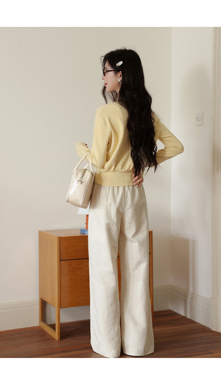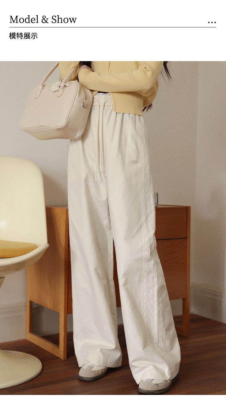 【65折秒杀】鹿向南「漫卷时光」百搭米白色宽松休闲裤女初秋显瘦垂感直筒长裤L56821