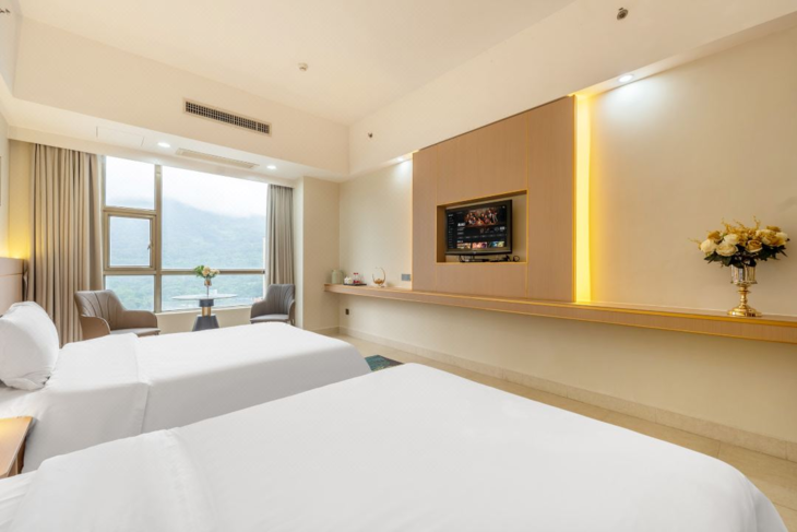 酒店于 2024 年 5 月开业,总建筑面积超 2 万平方米 ,共 15 层。设有各类标准房、海景房、套房及商务套房,共 130 余间。其地处大角湾 5A 景区内,下楼步行 5 分钟即可抵达沙滩,尽享海滨度假便利。