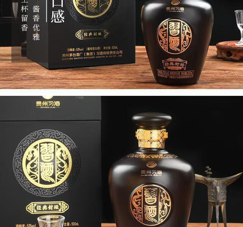 【尾货清仓】2023年 贵州习酒 经典封坛 53度 酱香型白酒500ml单瓶 500ml*6瓶整箱