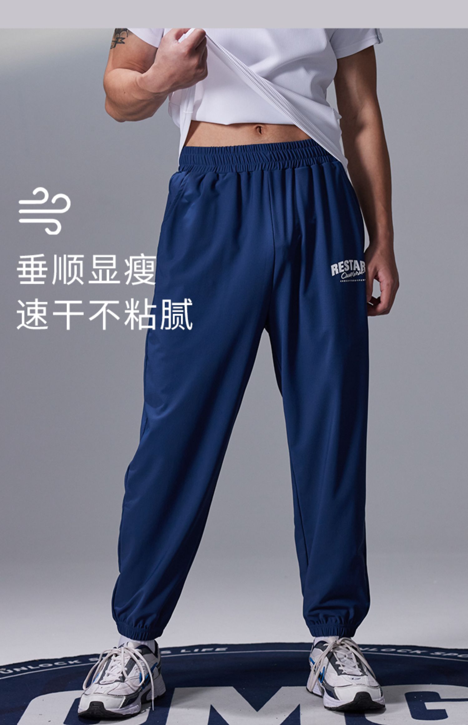 OMG 爽滑夏季垂感运动裤宽松速干长裤弹力健身裤透气薄冰丝凉感裤J-FMCK2462