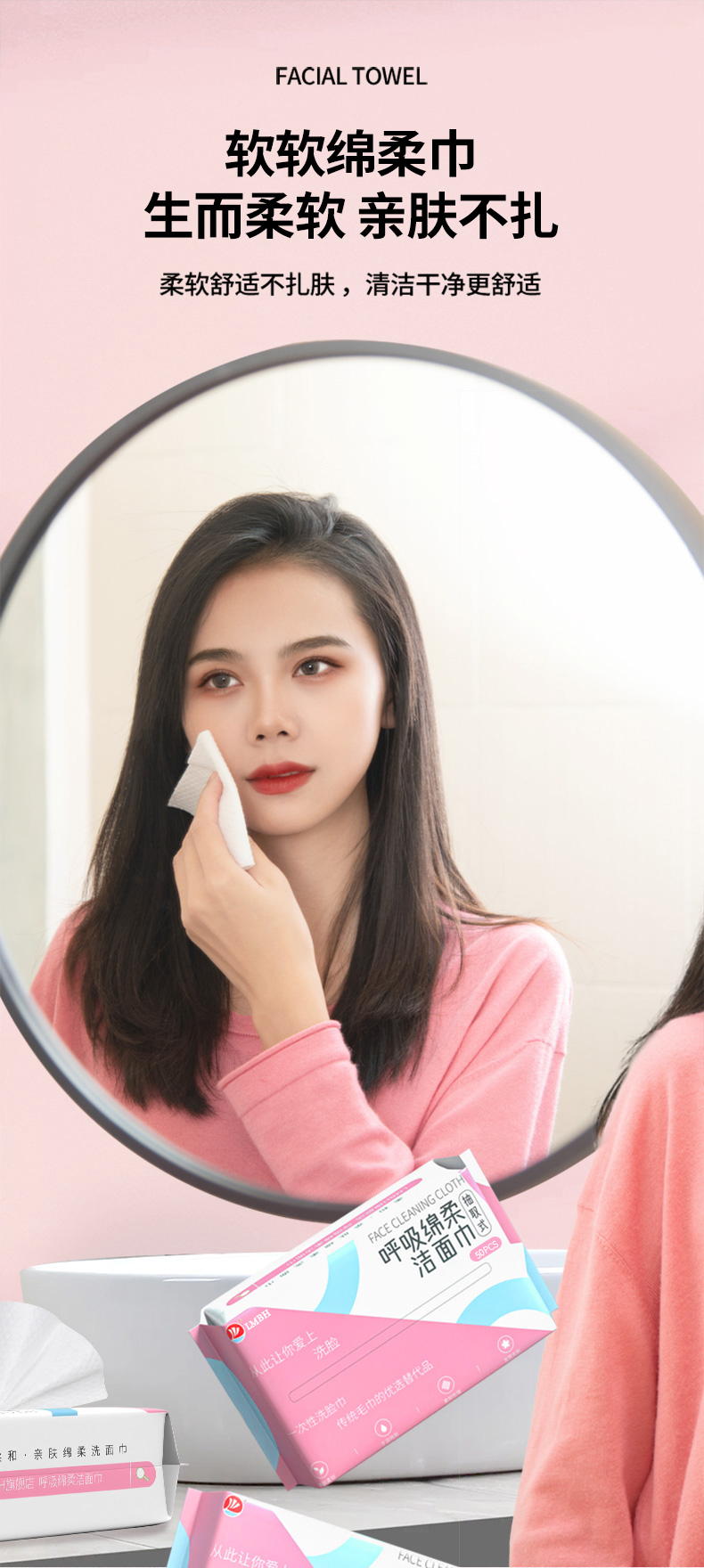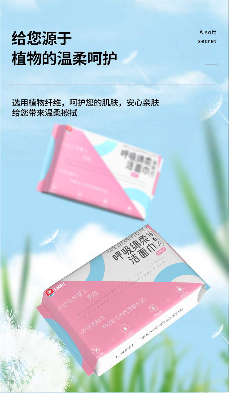 【LMBH】呼吸棉柔洁面巾50抽 · 柔软亲肤 孕婴可用 · 不易掉屑 · 干湿两用 · 双面收效抽取式棉柔巾