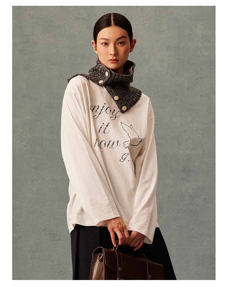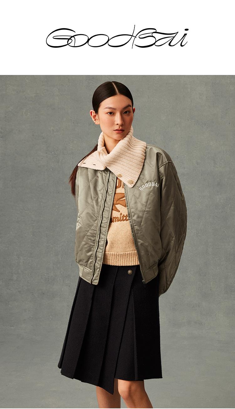 GOODBAI logo纽扣提花针织含羊毛围脖
