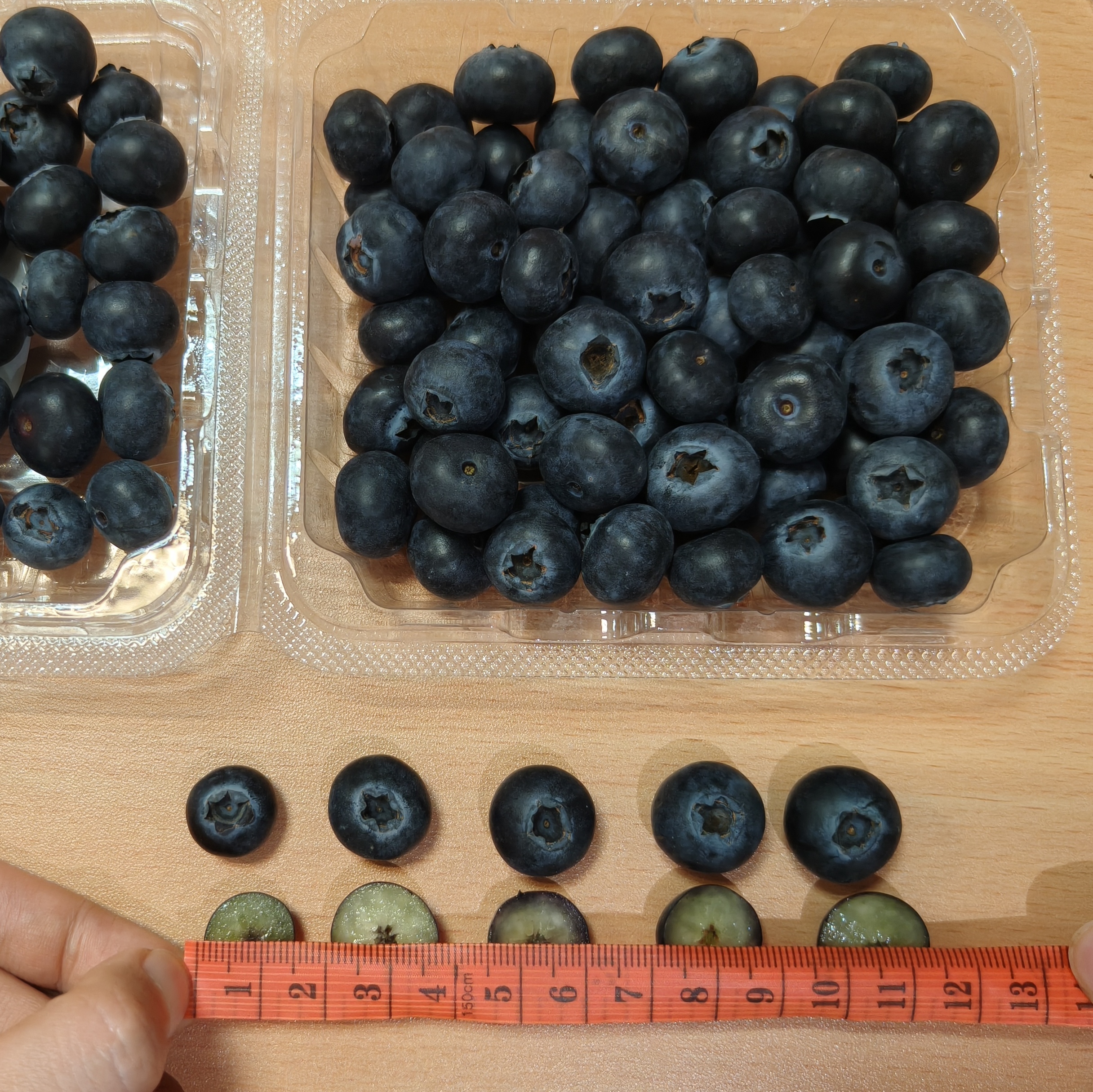 普通蓝莓大多是L6或L10,而L25天生没有果梗,果皮非常薄、果肉厚实脆甜,一盒里面几乎吃不到酸的,只有少数一两颗会带酸味。