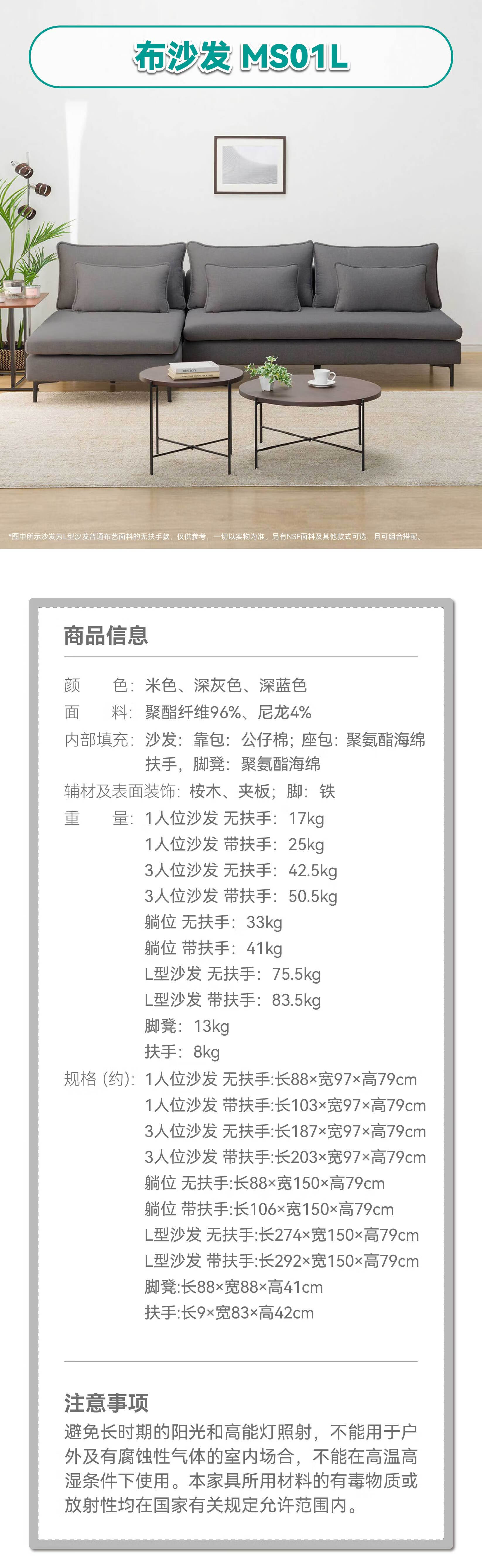 【家具】客厅简约大气抗刮磨自由组合布沙发MS01L