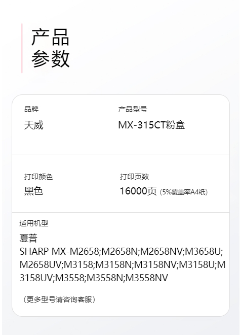 天威 MX-315CT粉盒 大容量 适用夏普SHARP MX-M2658N碳粉M2658U M3158N墨盒M3158U M3558N复印机墨粉 粉筒