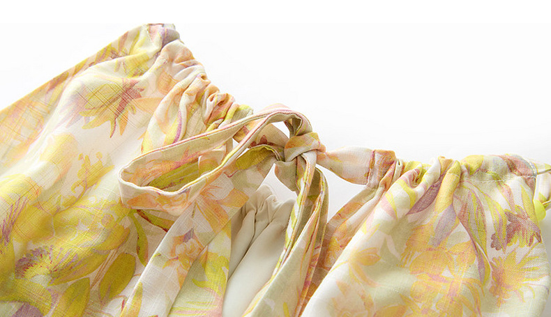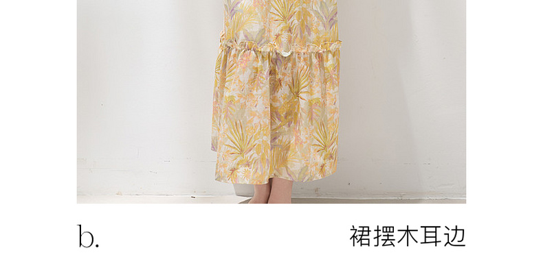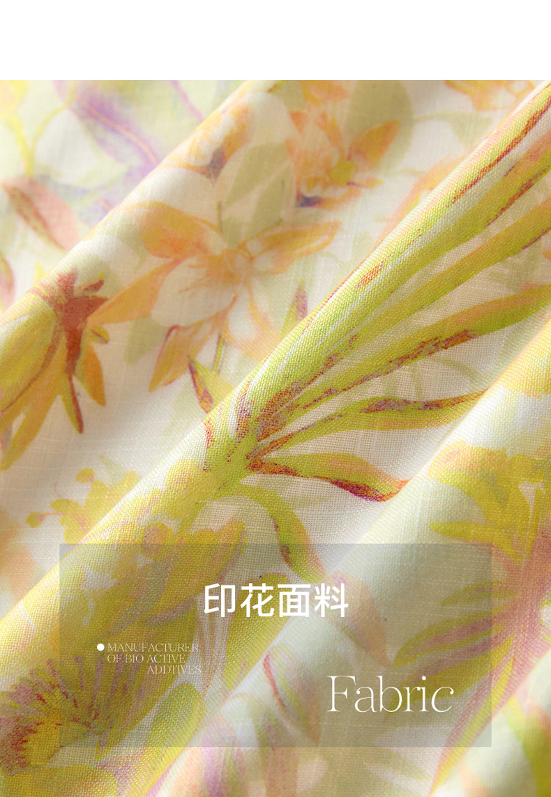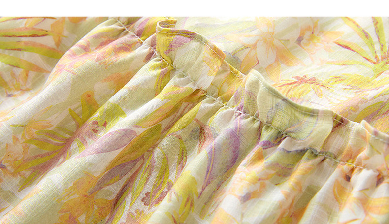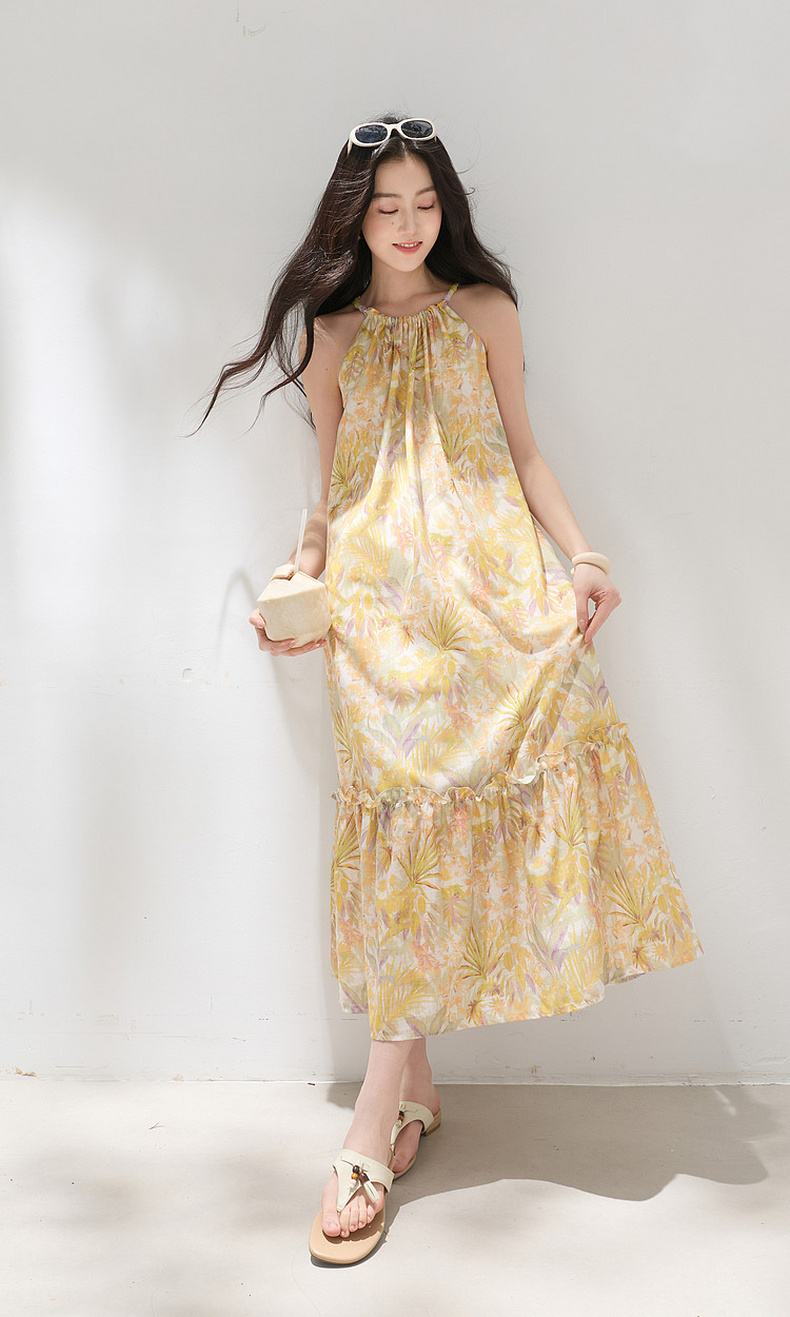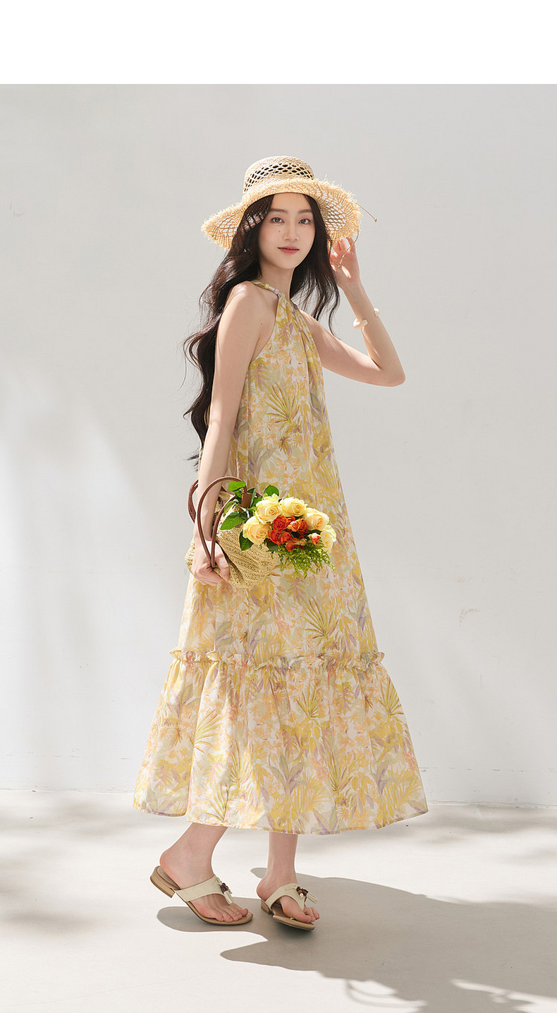 三彩2026夏季新款印花连衣裙挂脖无袖度假长裙宽松大摆M