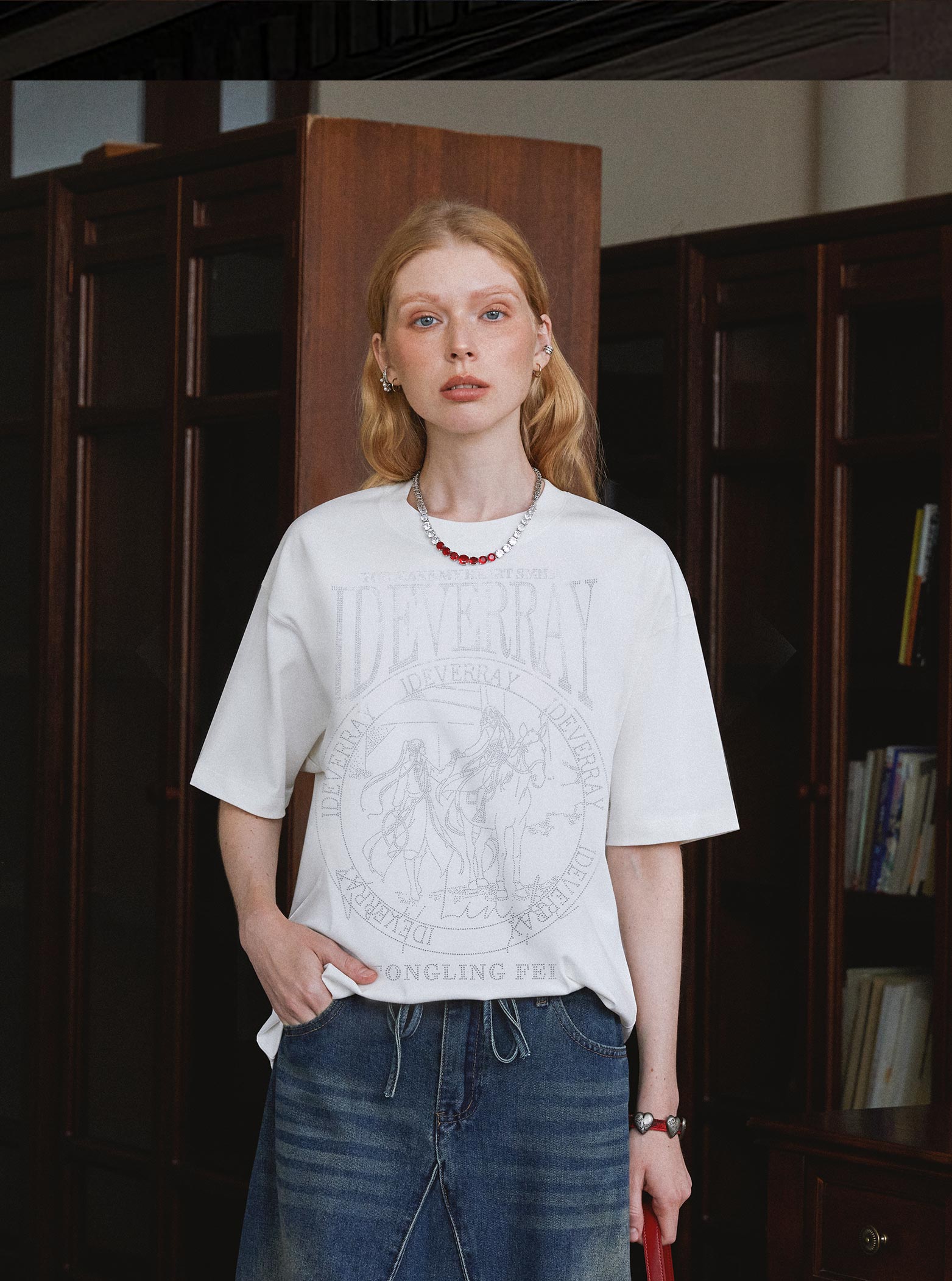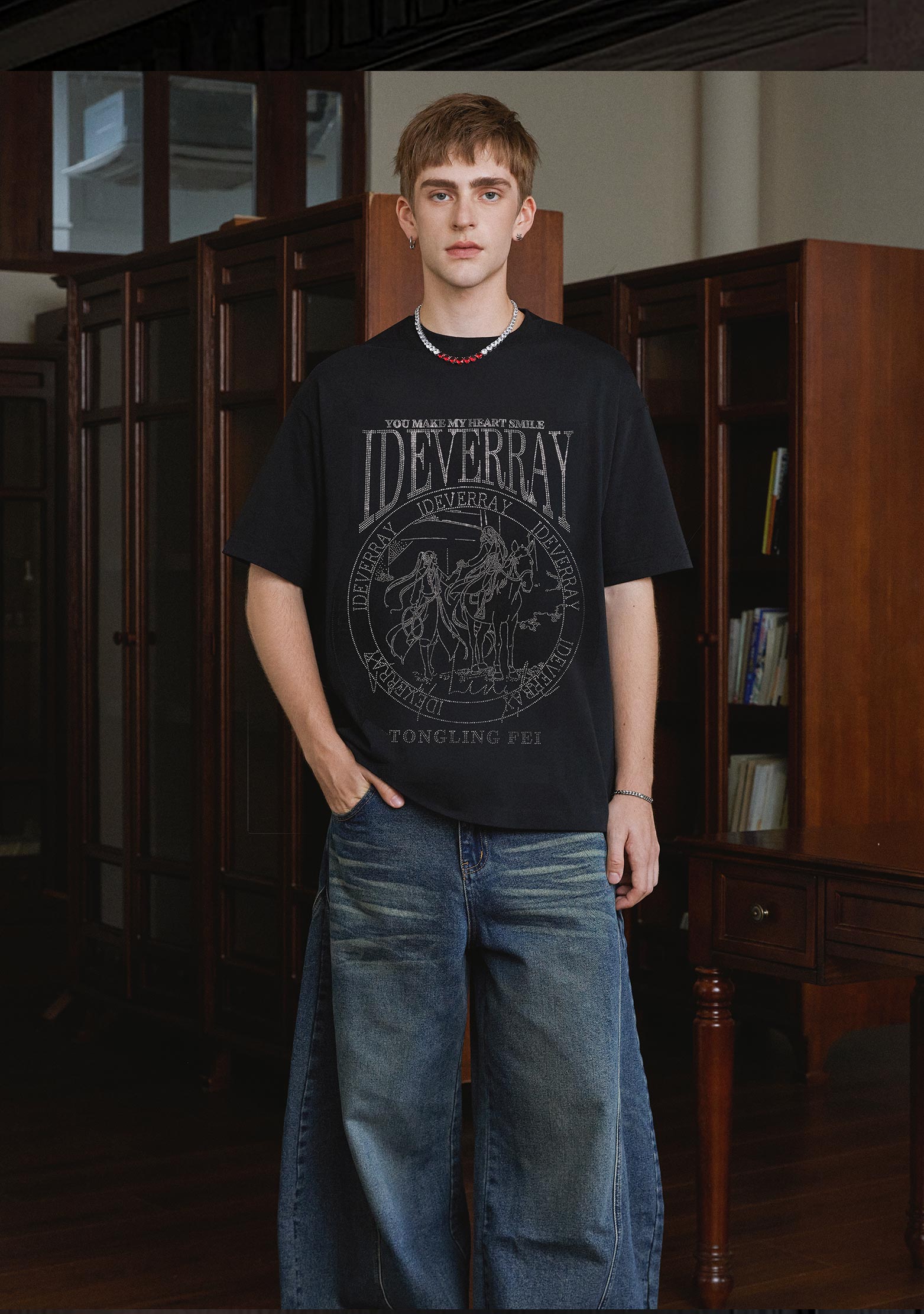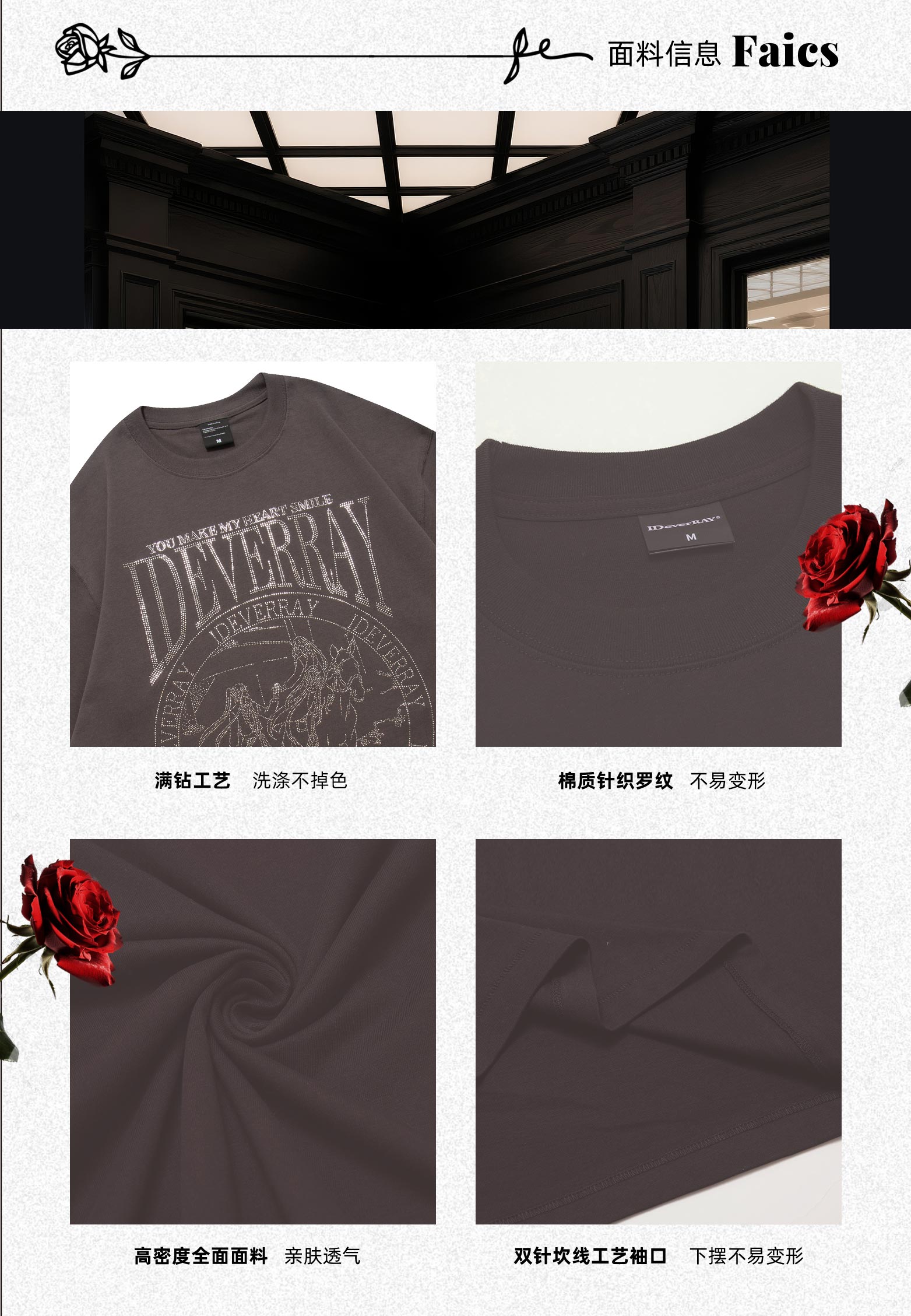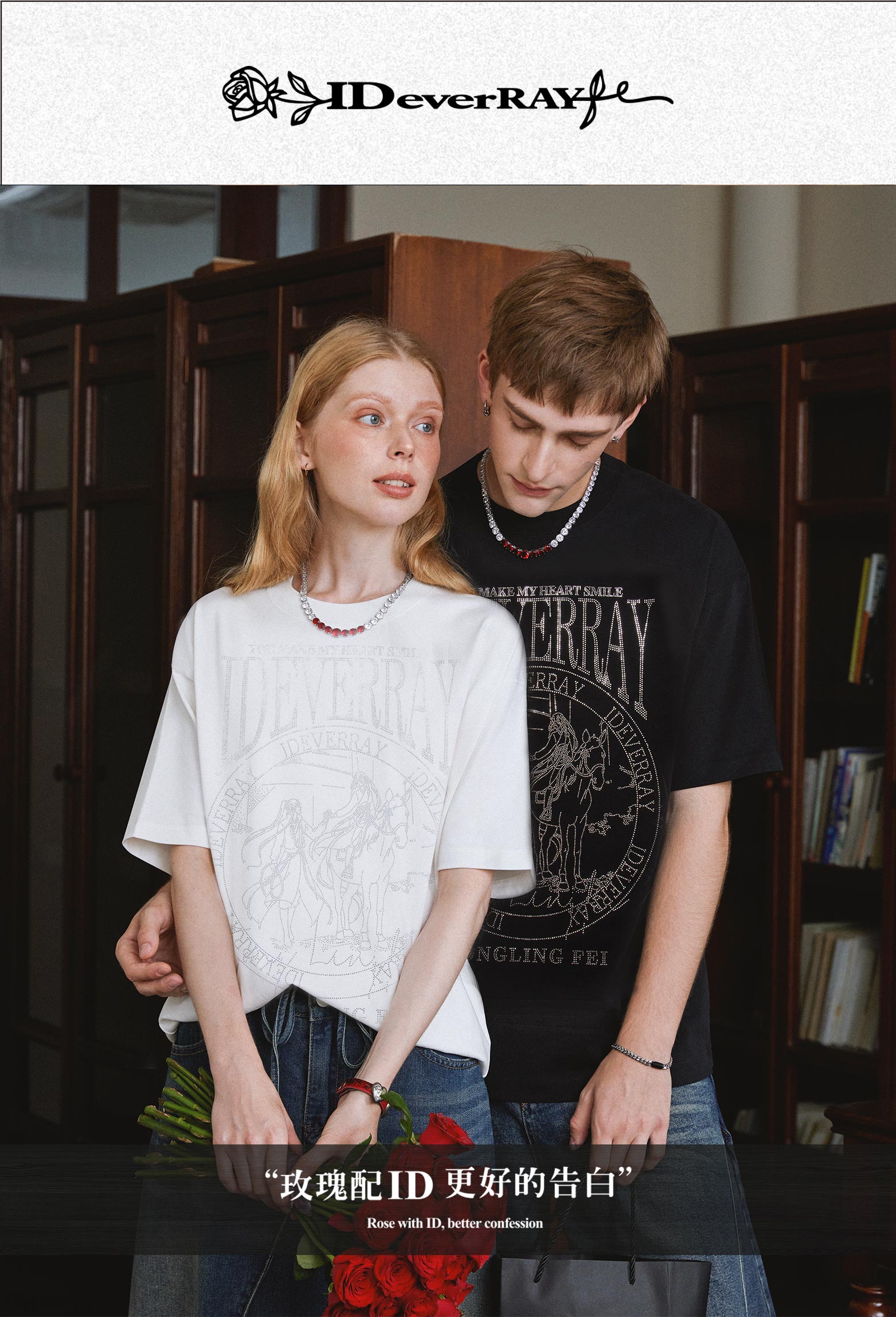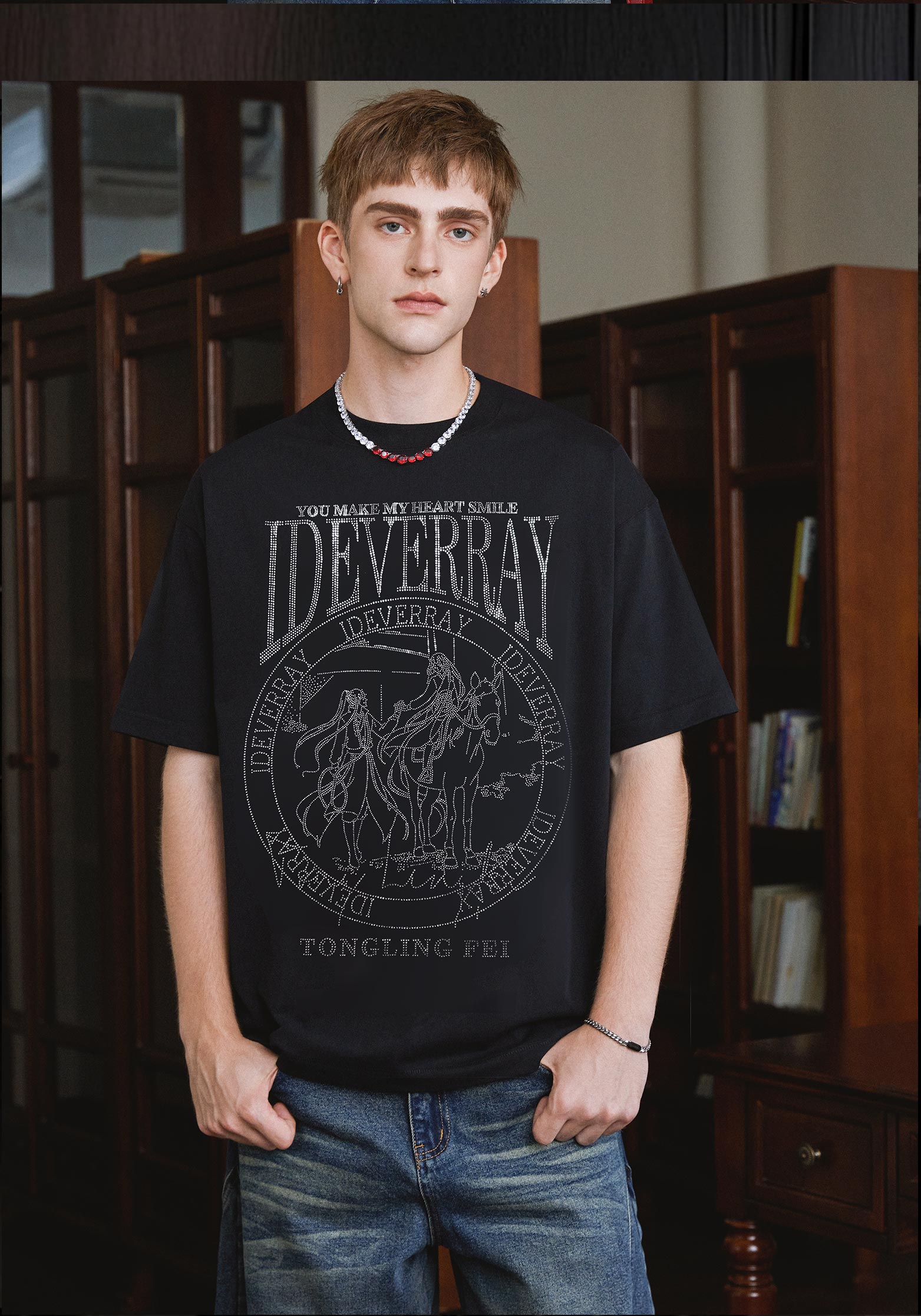 【通灵妃联名】IDEVERRAY品牌烫钻t恤短袖男宽松夏季情侣国潮上衣21MSL-TM677