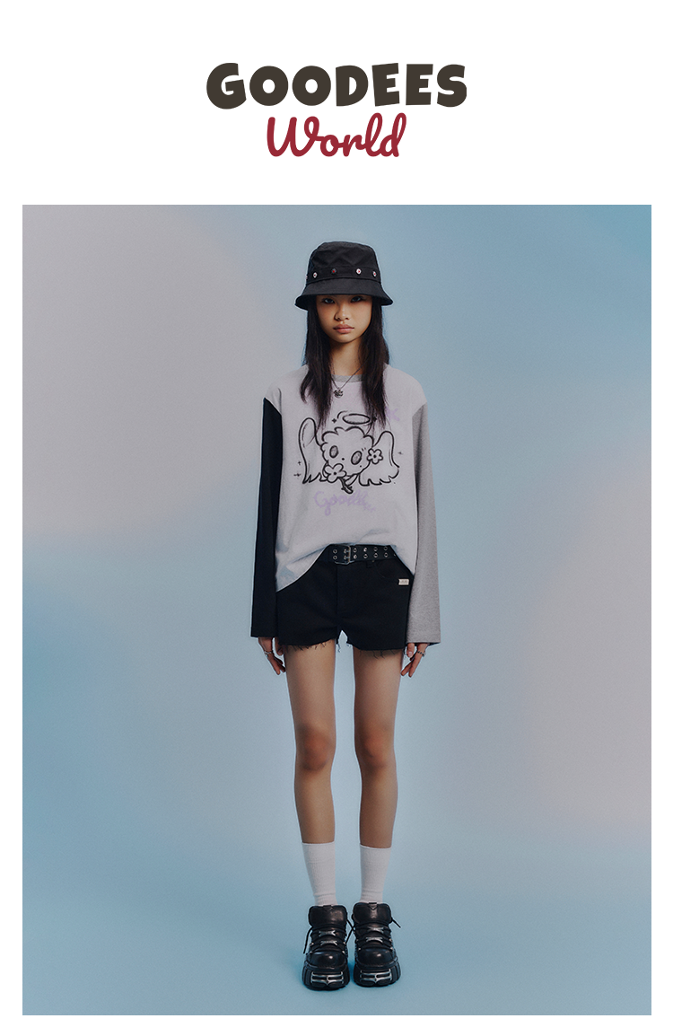 GOODBAI GOODEES 刺绣logo毛边短裤