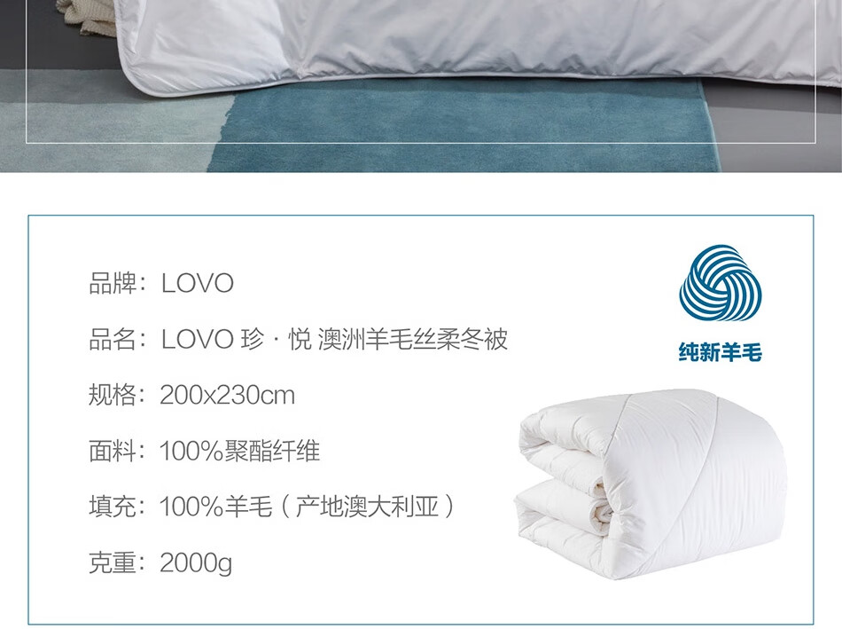 LOVO乐蜗-T-珍·悦 澳洲羊毛丝柔冬被