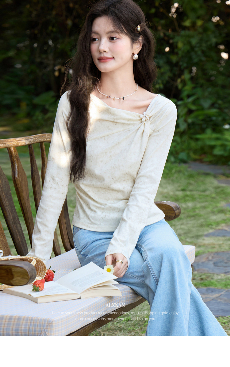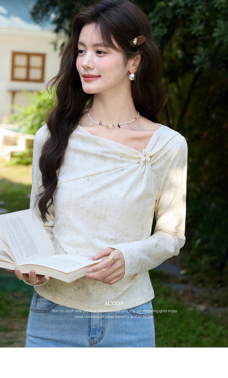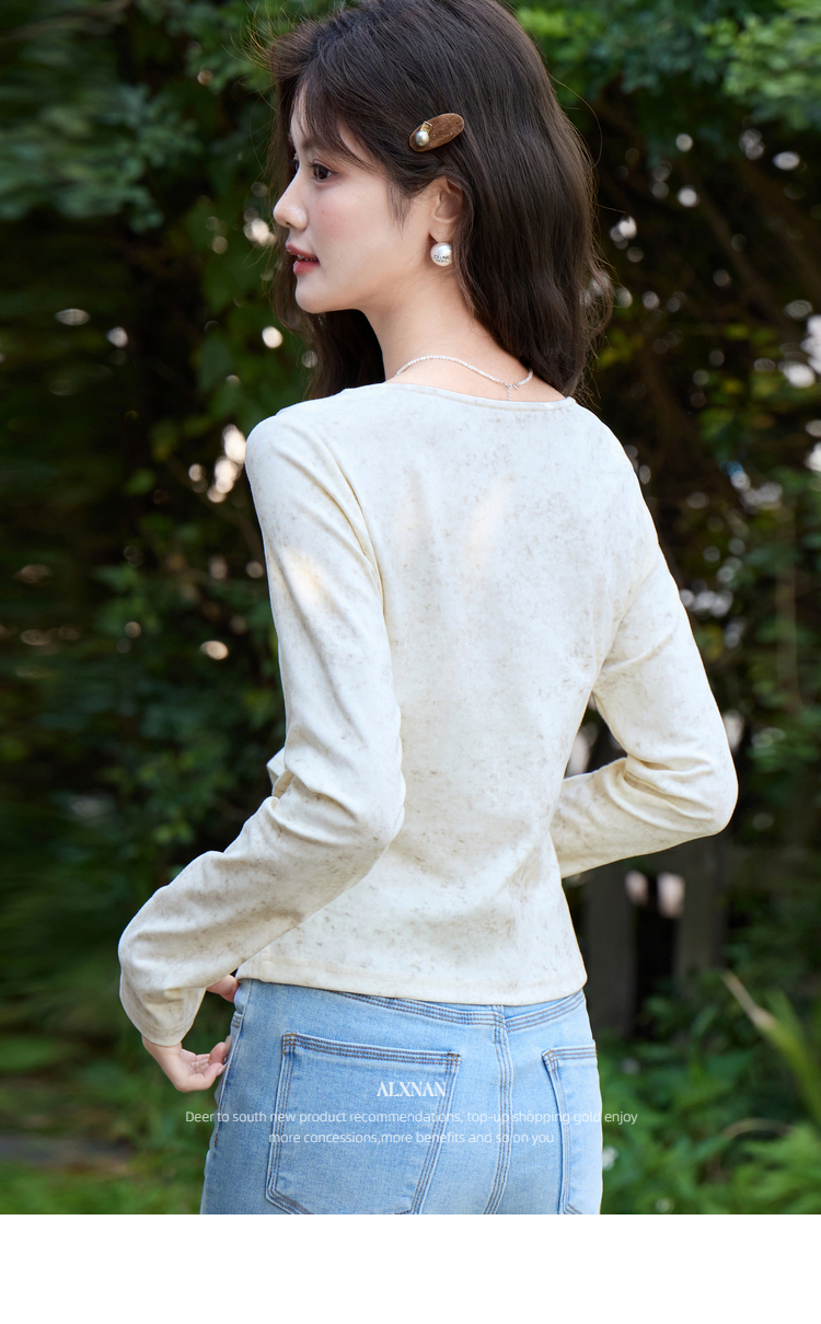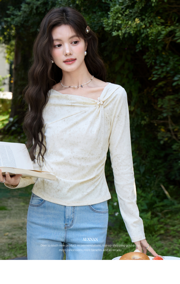 鹿向南【0211/20:00新品前1小时7折限量100件】杏色设计感长袖T恤