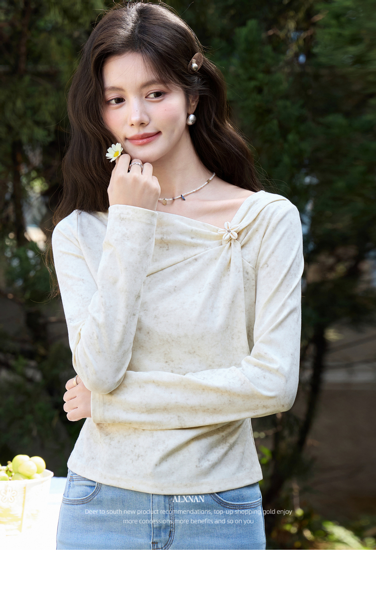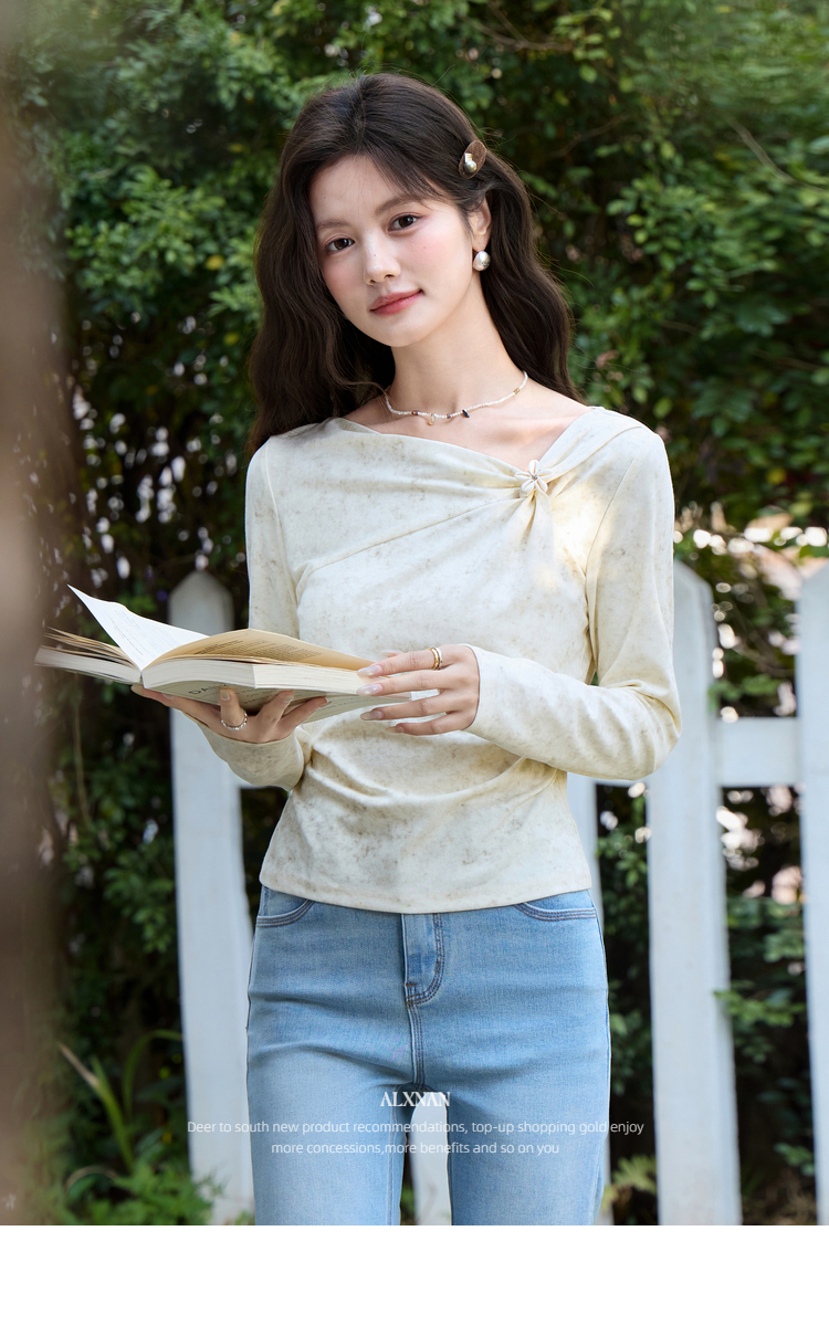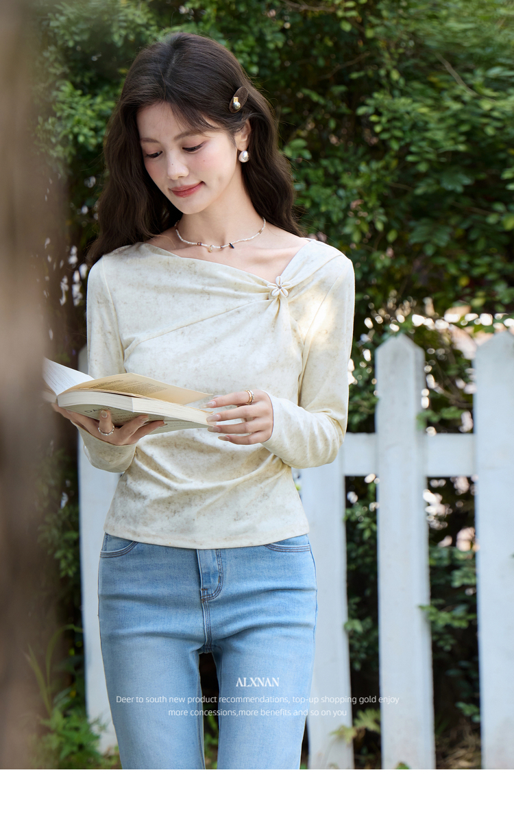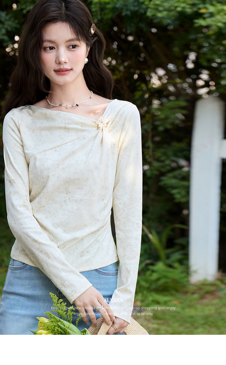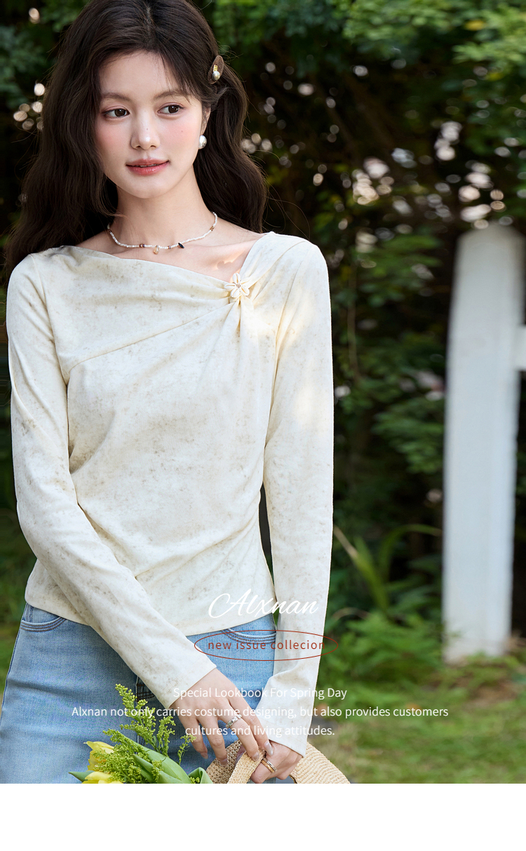 鹿向南【0211/20:00新品前1小时7折限量100件】杏色设计感长袖T恤
