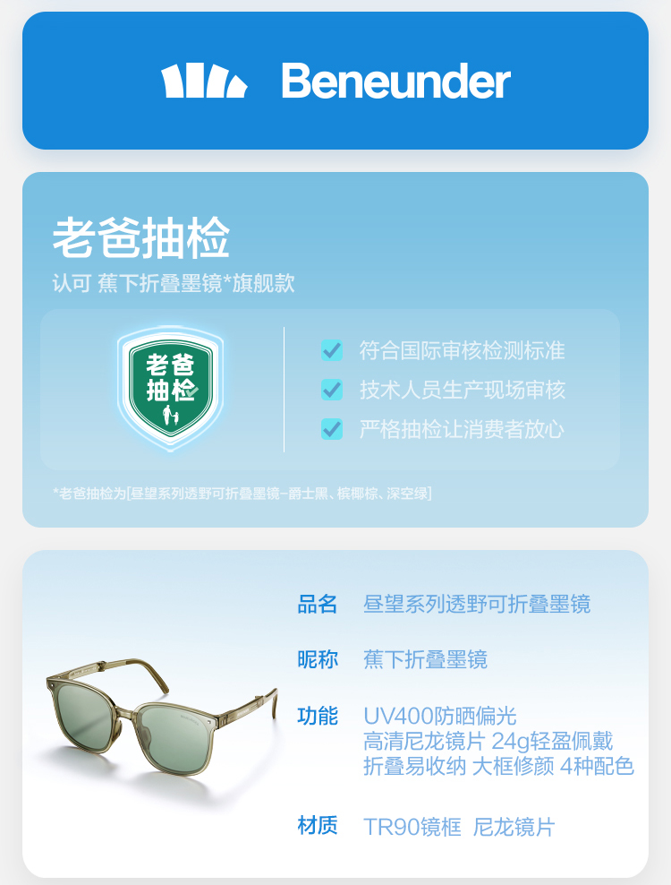 蕉下昼望系列可折叠墨镜(爵士黑)/个