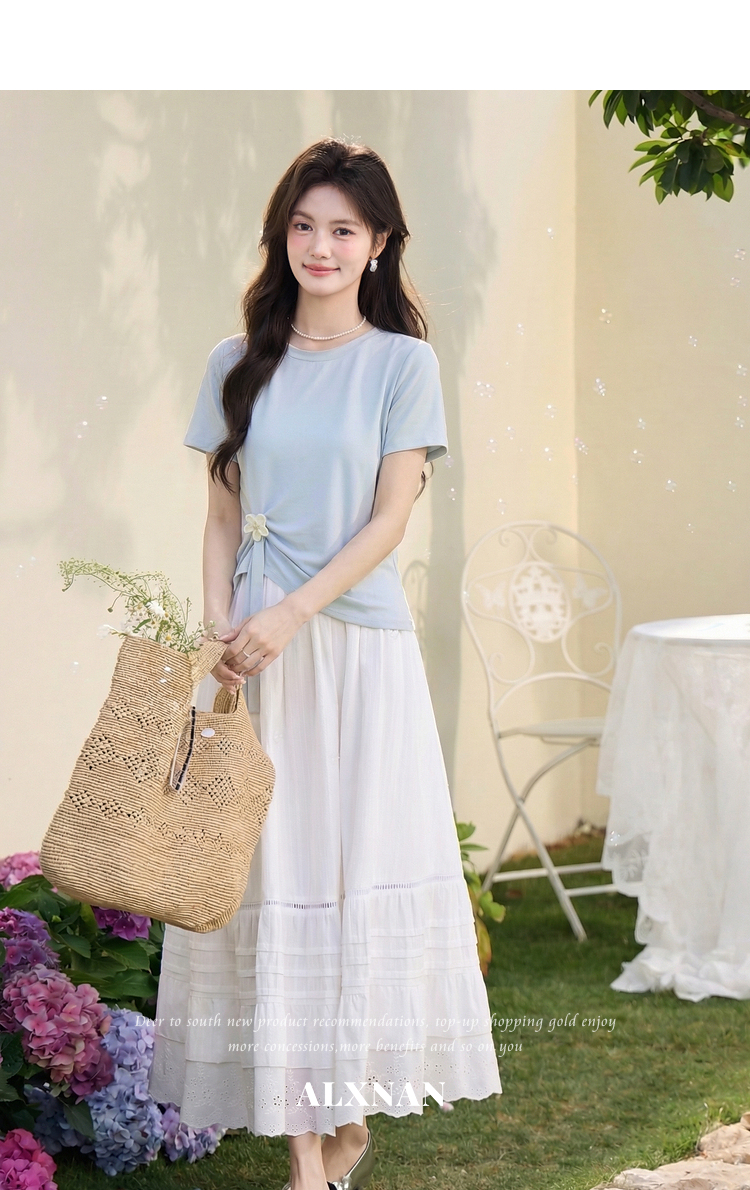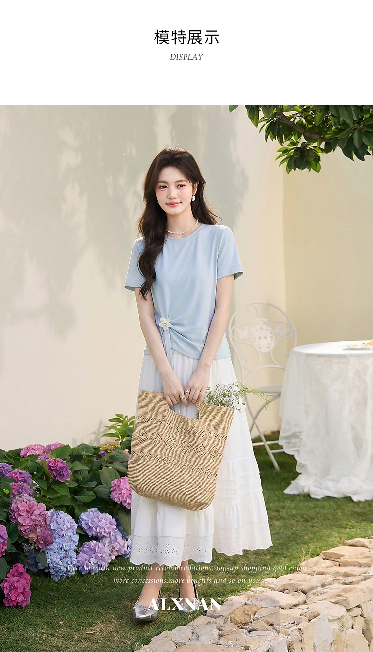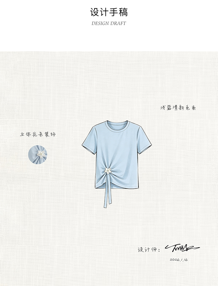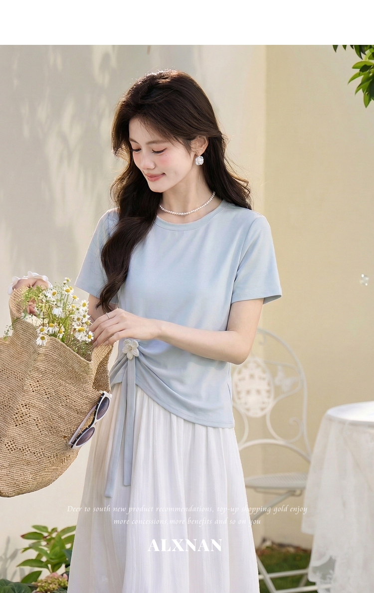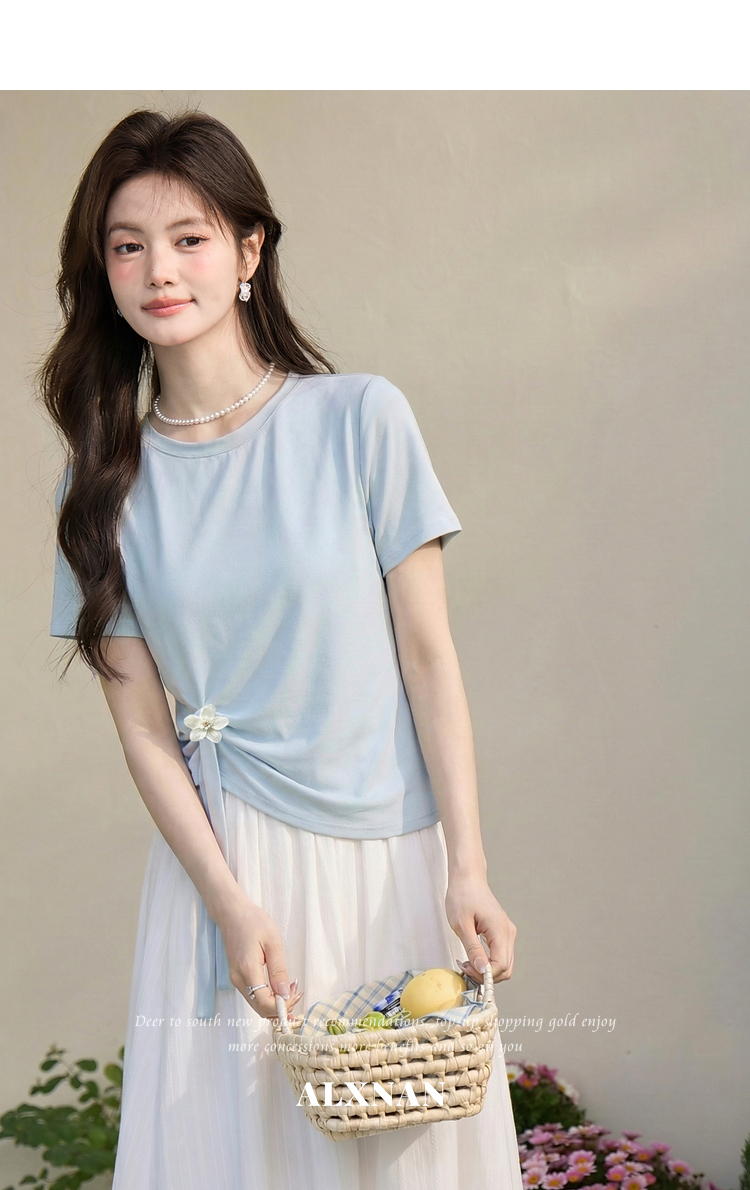鹿向南「南巷清风」蓝色短袖T恤女夏季新款韩系chic漂亮减龄上衣