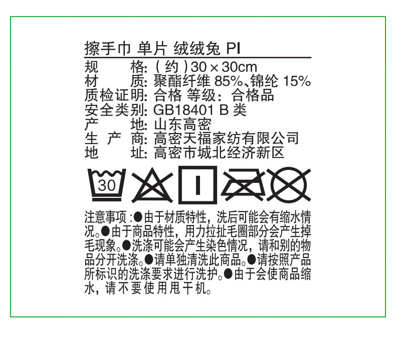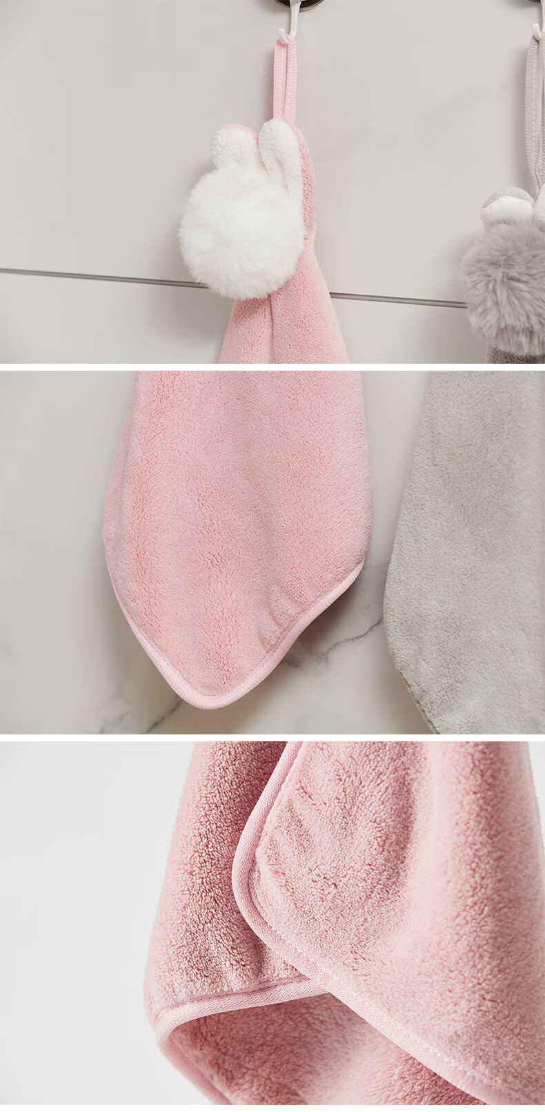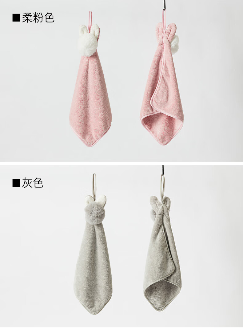 擦手巾 单片 绒绒兔 粉色/灰色