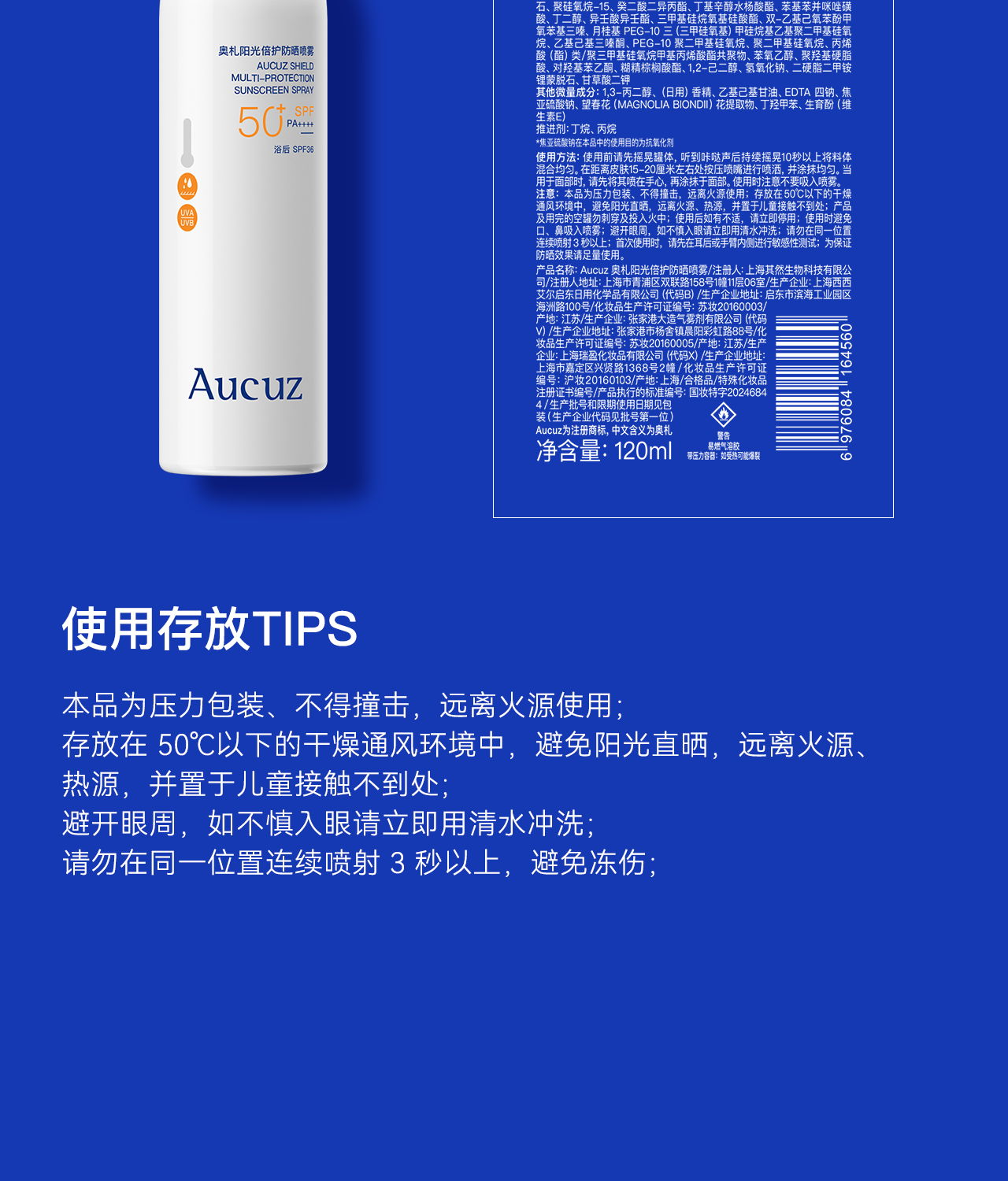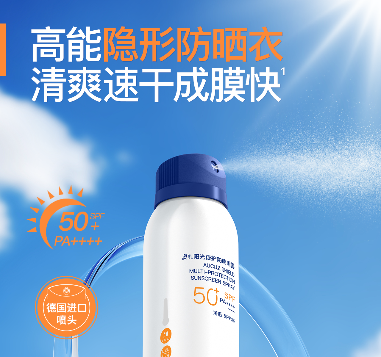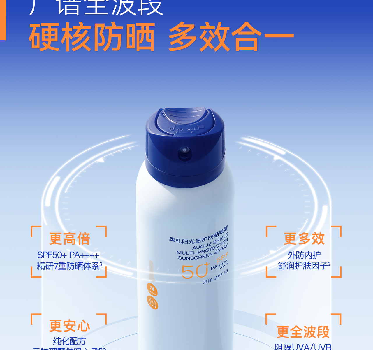 奥札防晒喷雾 小白喷2.0 120ml SPF50+ 【压力罐多收运费会退】