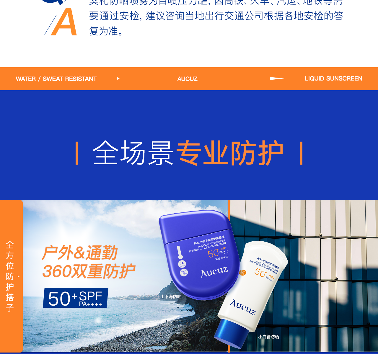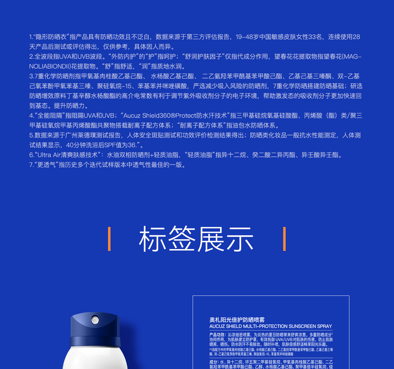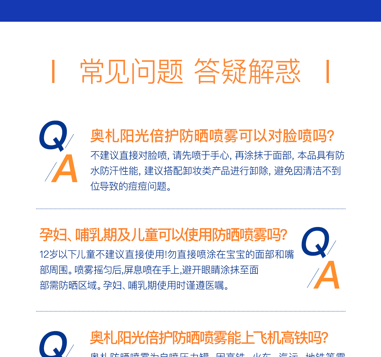 奥札防晒喷雾 小白喷2.0 120ml SPF50+ 【压力罐多收运费会退】