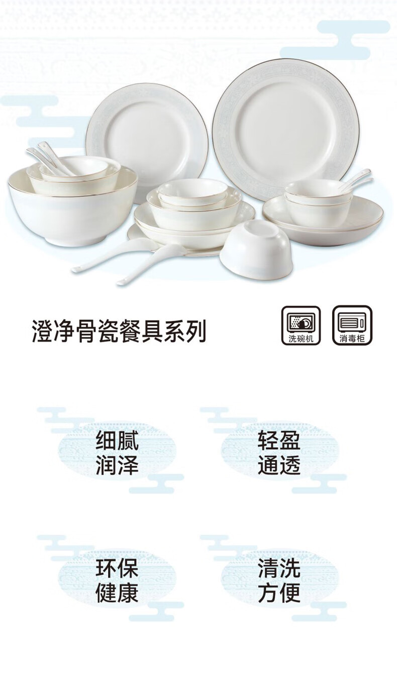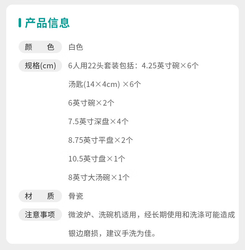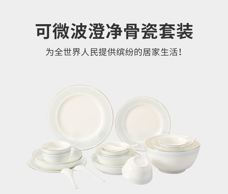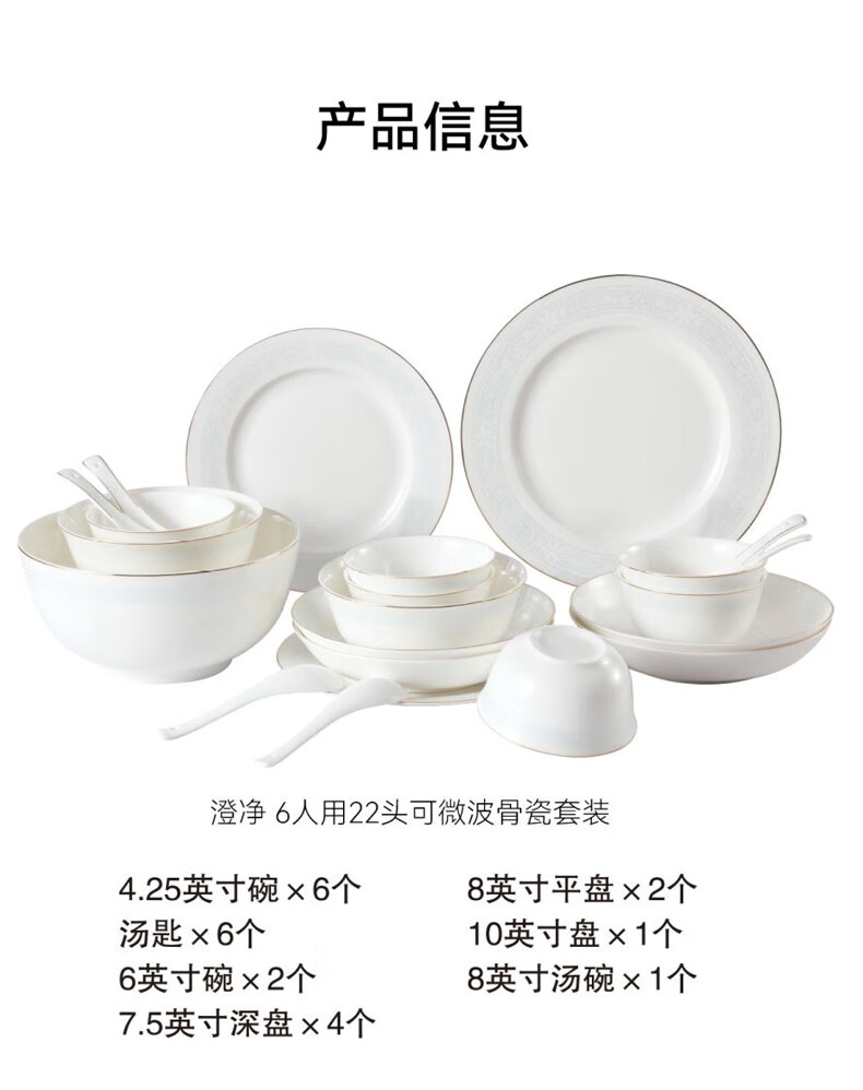 6人用22头可微波澄净骨瓷套装