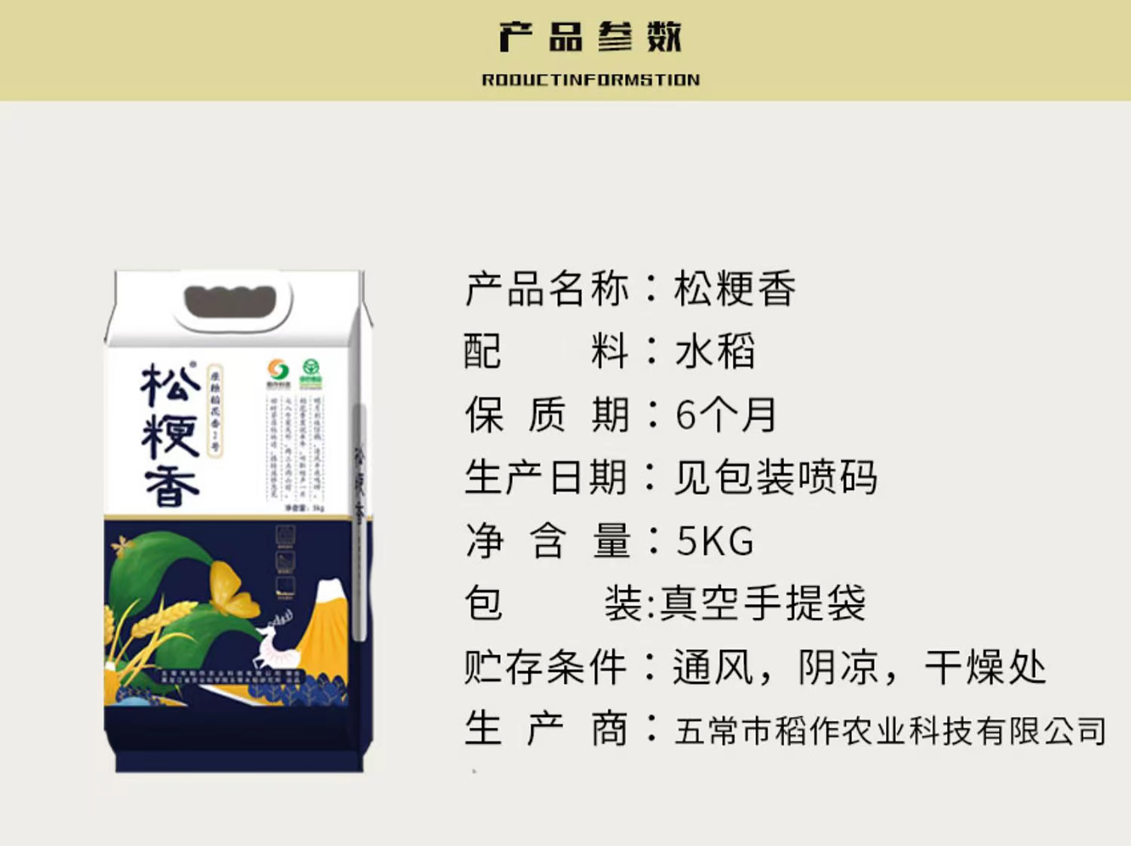 黑龙江松粳香5kg五常稻花香米真空包装 五常水稻研究所出品