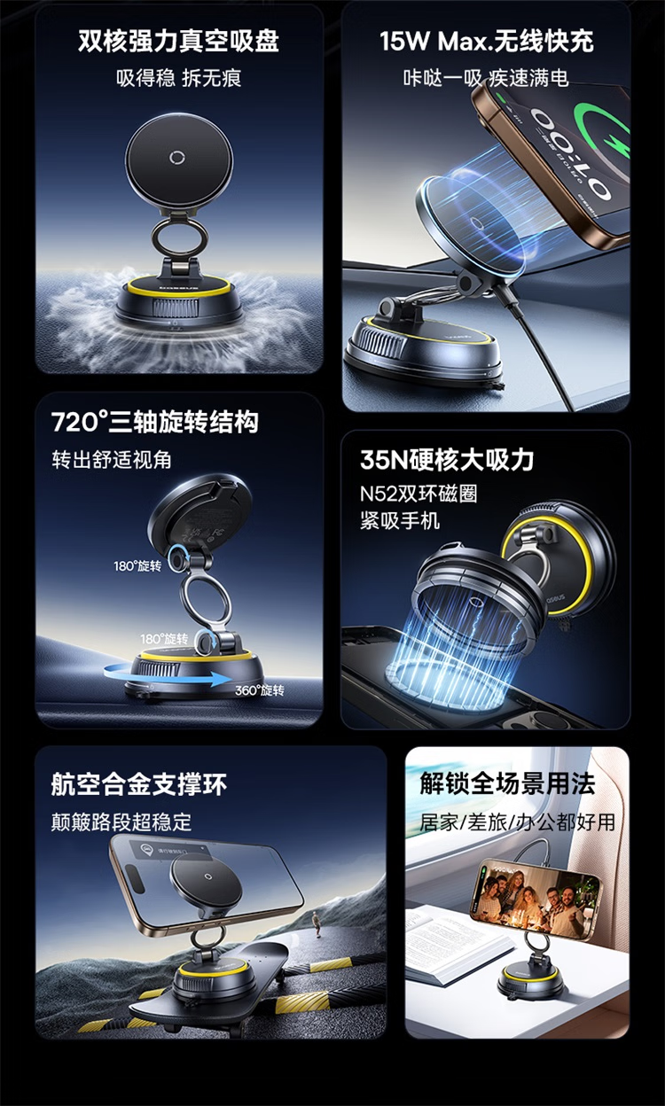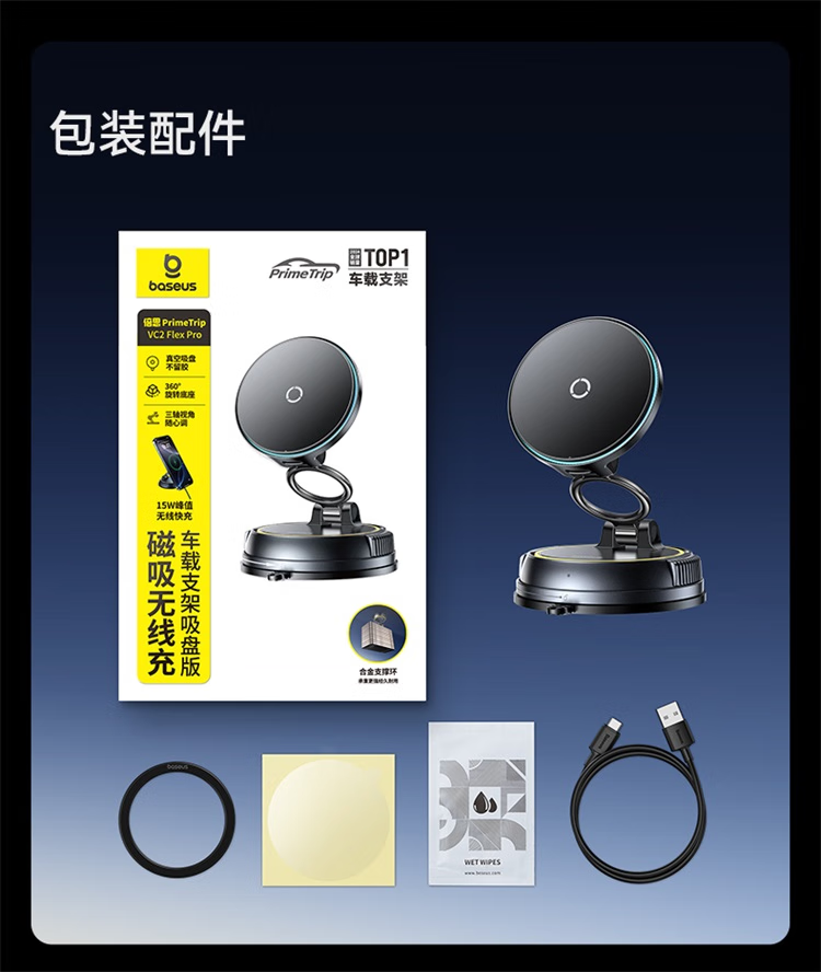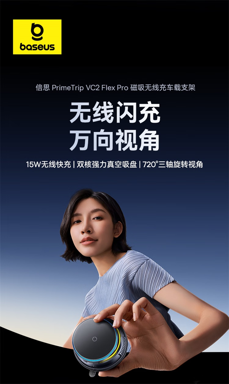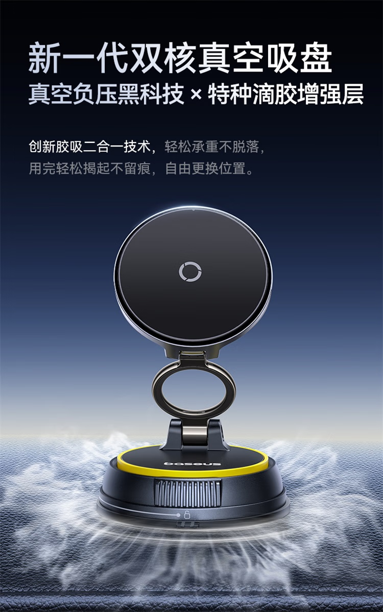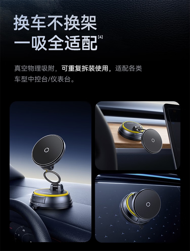 【京东热销评论5W+】倍思 PrimeTrip VC2 Flex Pro 磁吸无线充车载支架 吸盘版 手机支架 汽车专用导航仪表台 星际黑