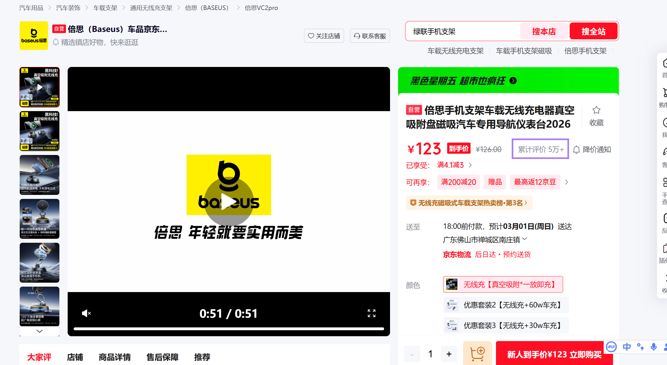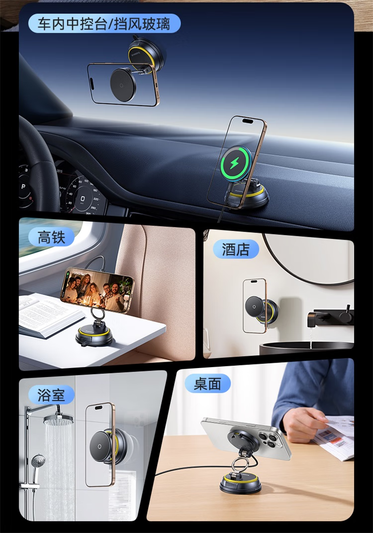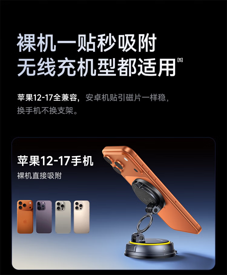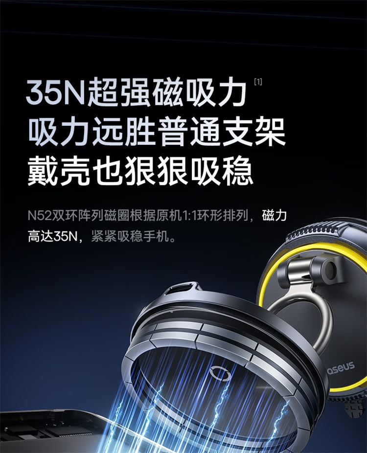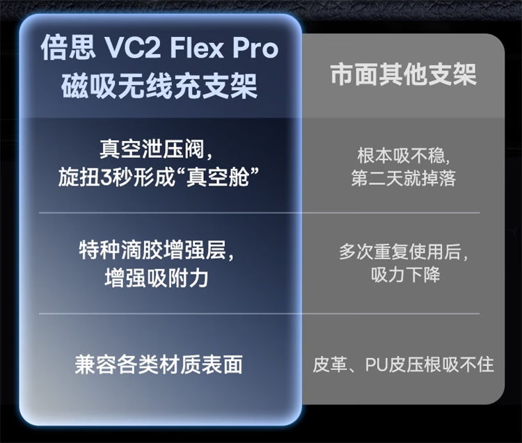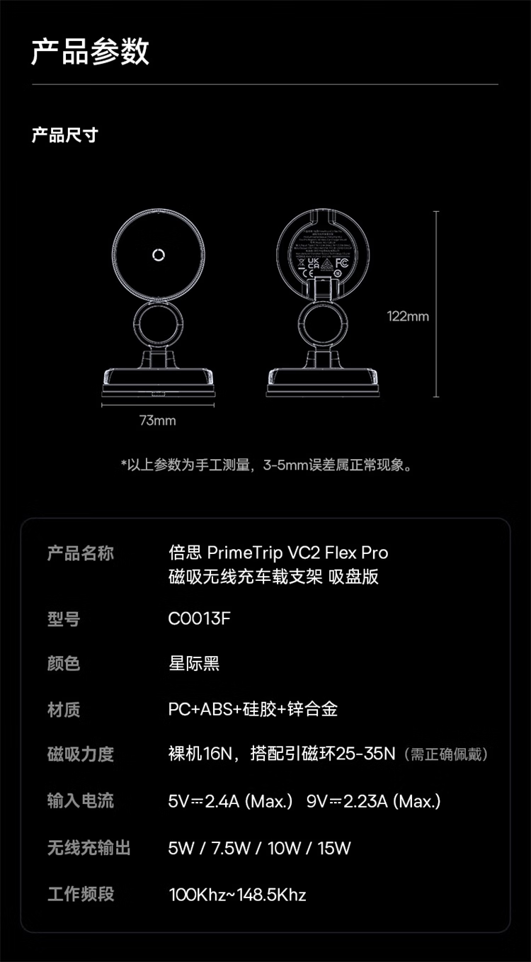 【京东热销评论5W+】倍思 PrimeTrip VC2 Flex Pro 磁吸无线充车载支架 吸盘版 手机支架 汽车专用导航仪表台 星际黑