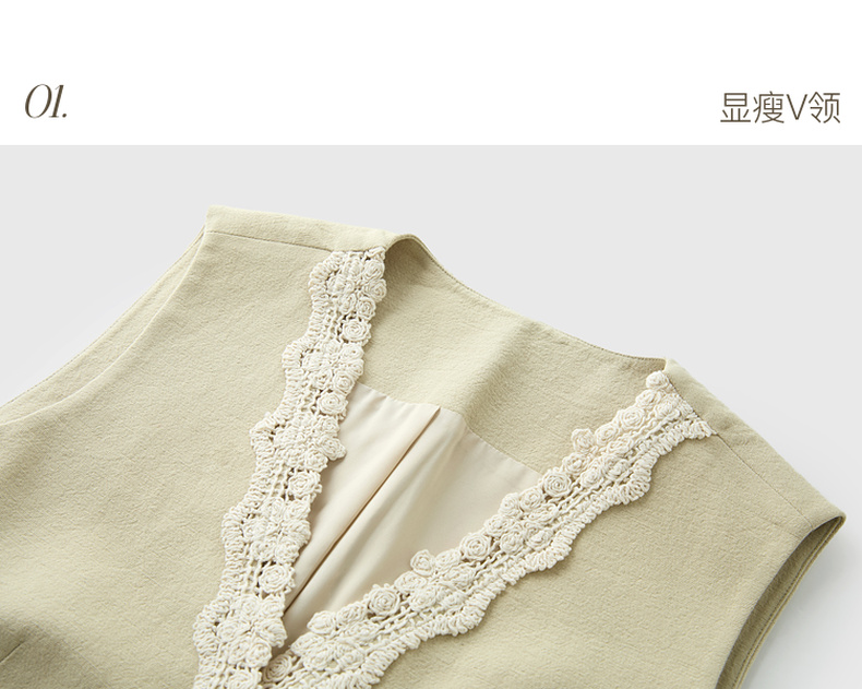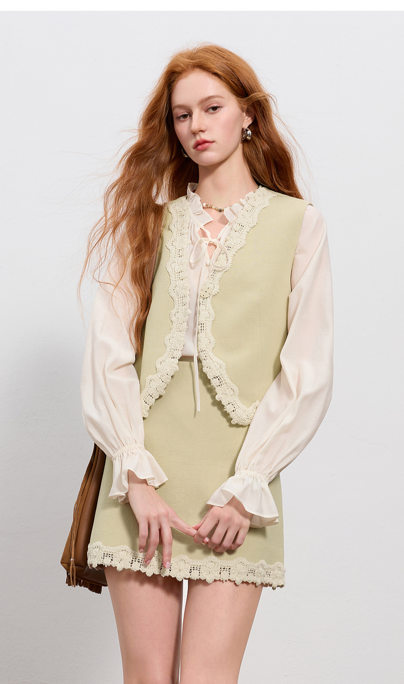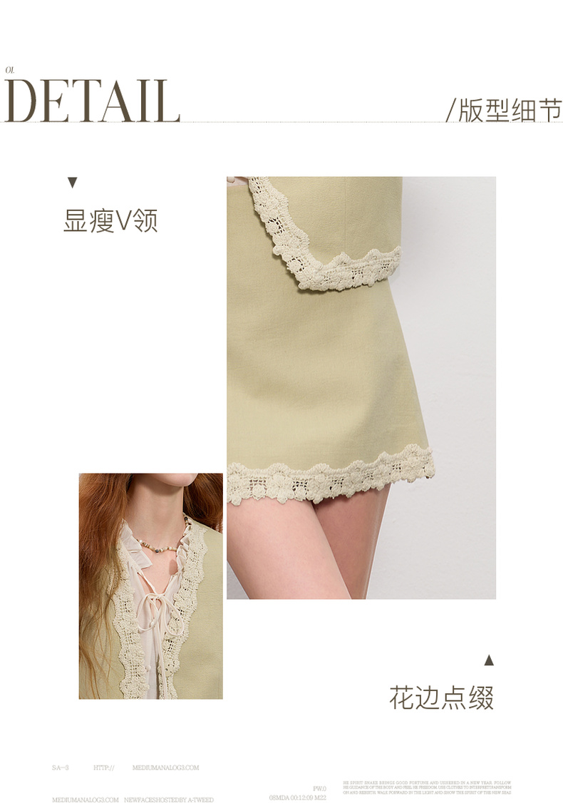 三彩2025秋季新款休闲套装无袖马甲上衣半身裙花边两件套M