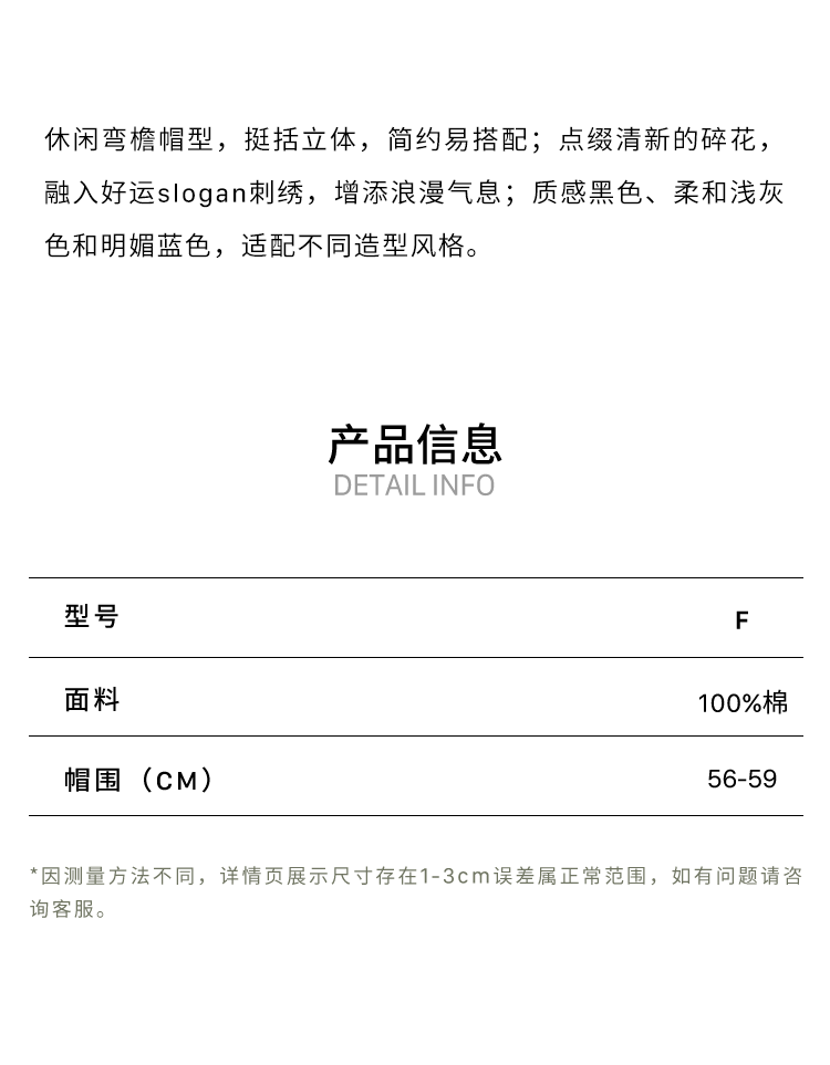 GOODBAI Good Luck Everyday slogan刺绣碎花弯檐棒球帽