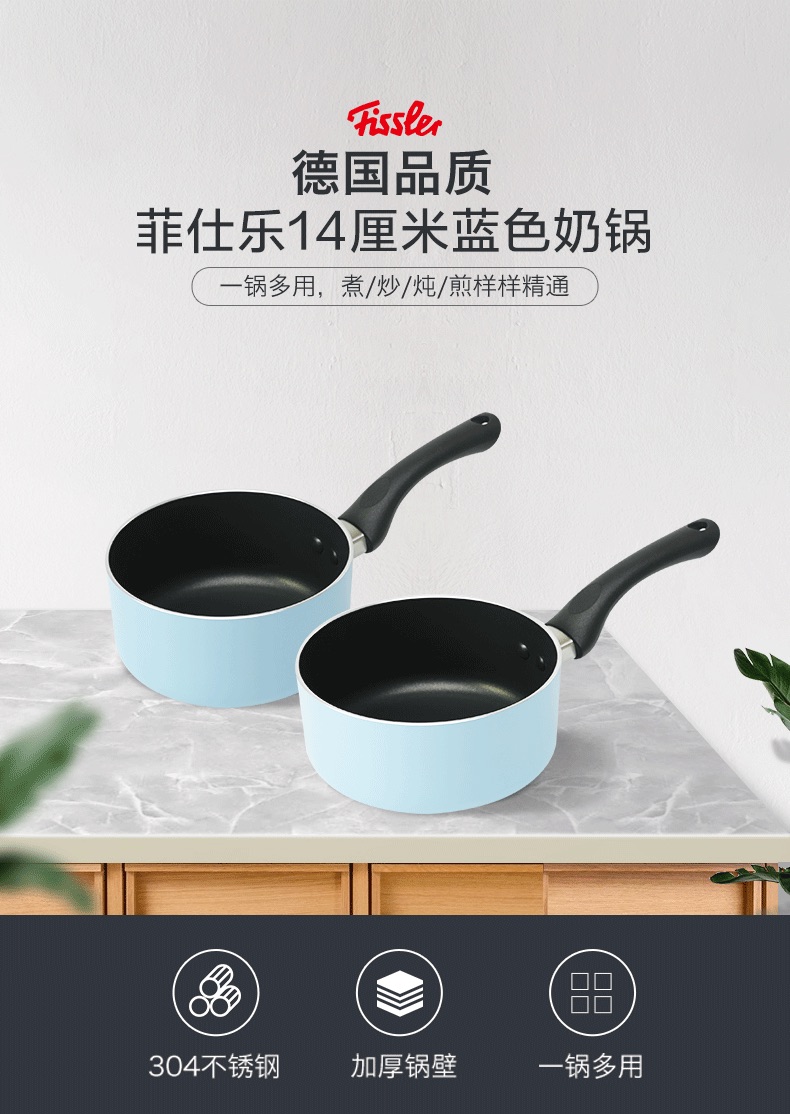 德国菲仕乐粉蓝煎锅奶锅 煎蛋锅 热奶锅 婴儿辅食锅 【粉蓝煎锅+粉蓝奶锅套组】