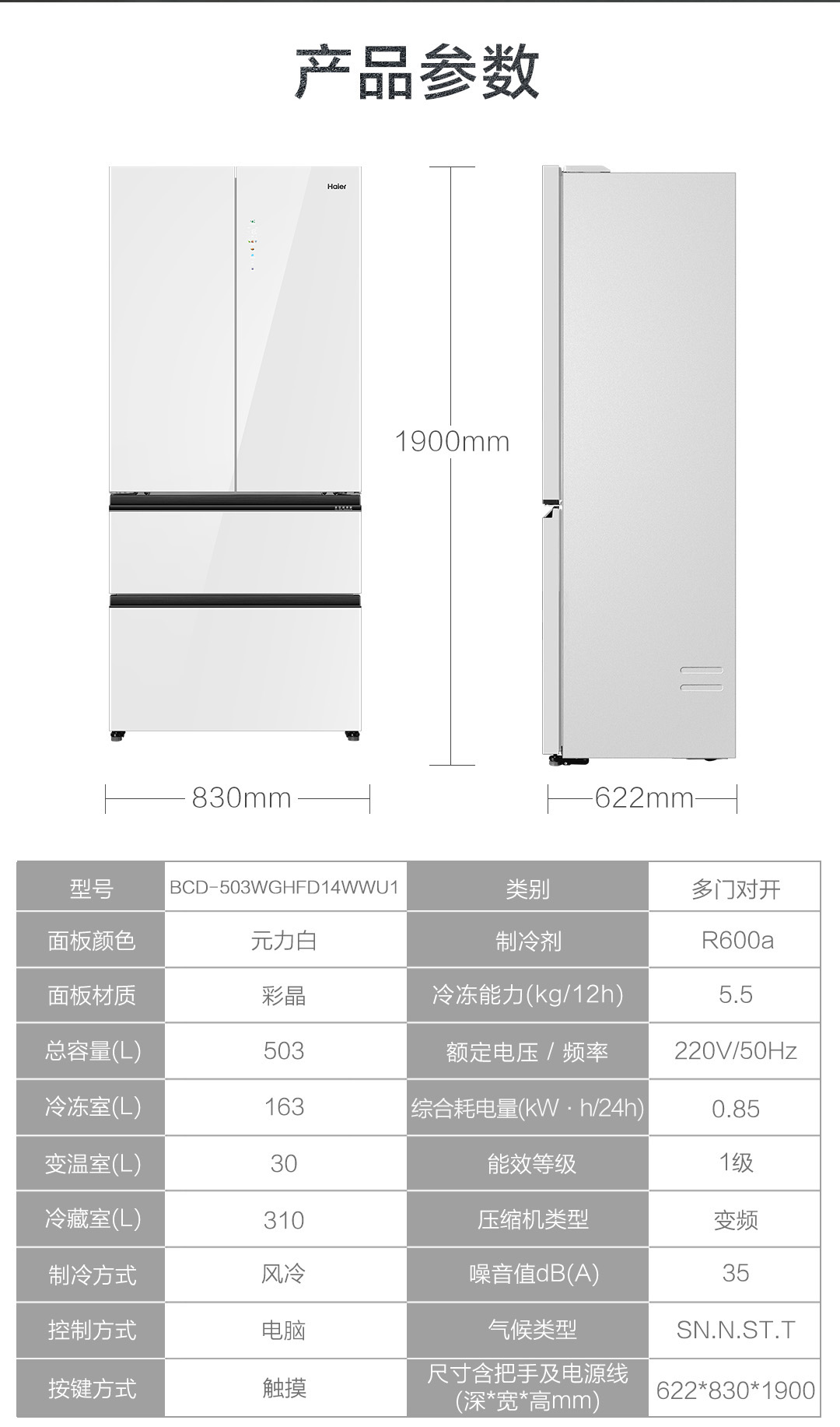 海尔/冰箱/BCD-503WGHFD14WWU1