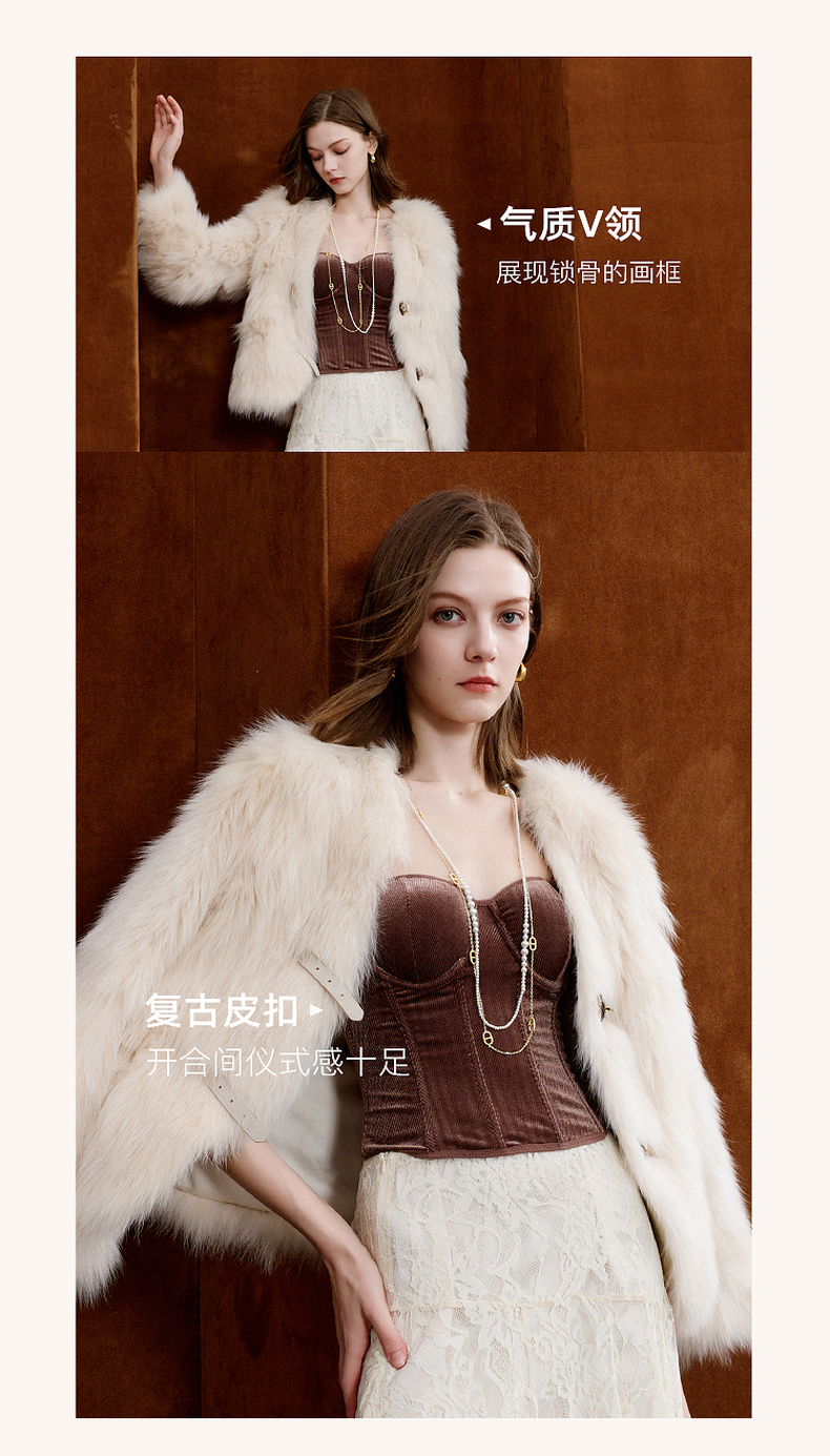 三彩独醒2025冬季新款轻奢狐狸毛皮毛一体真皮草短款毛毛外套F