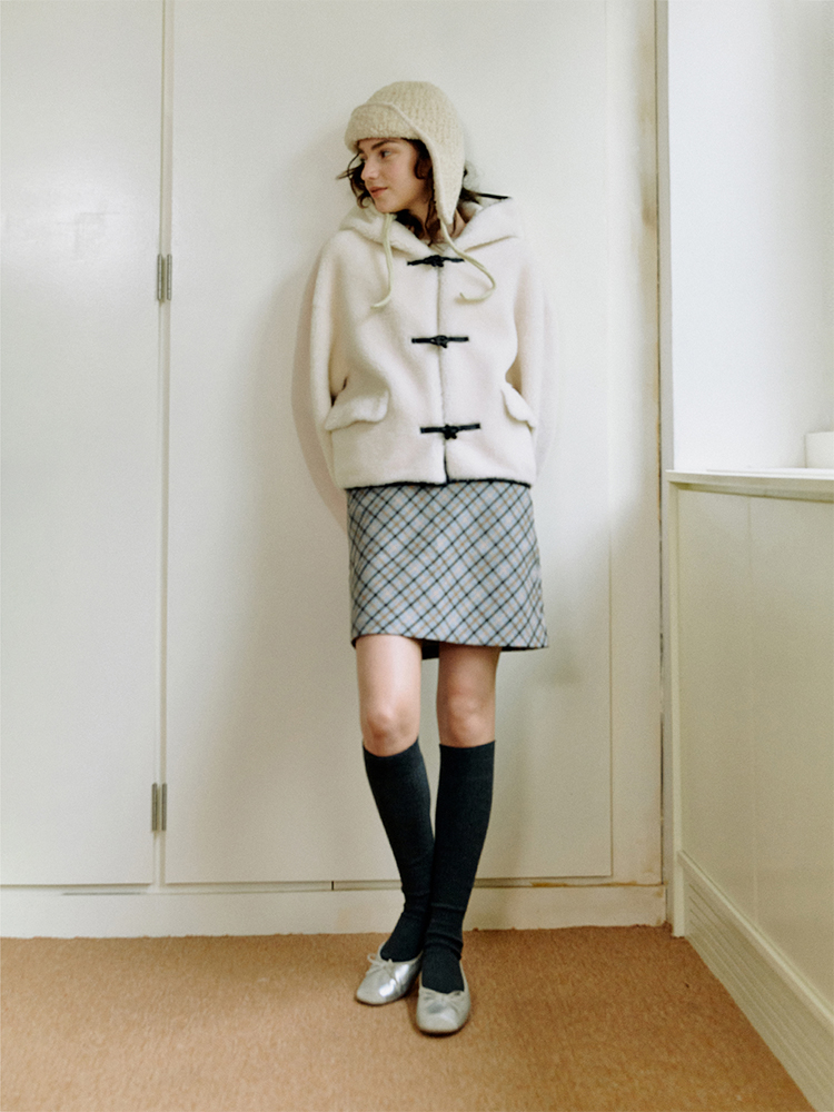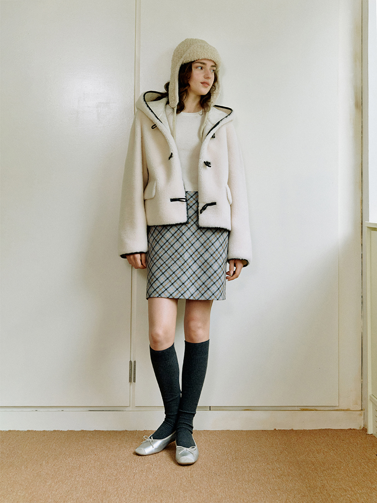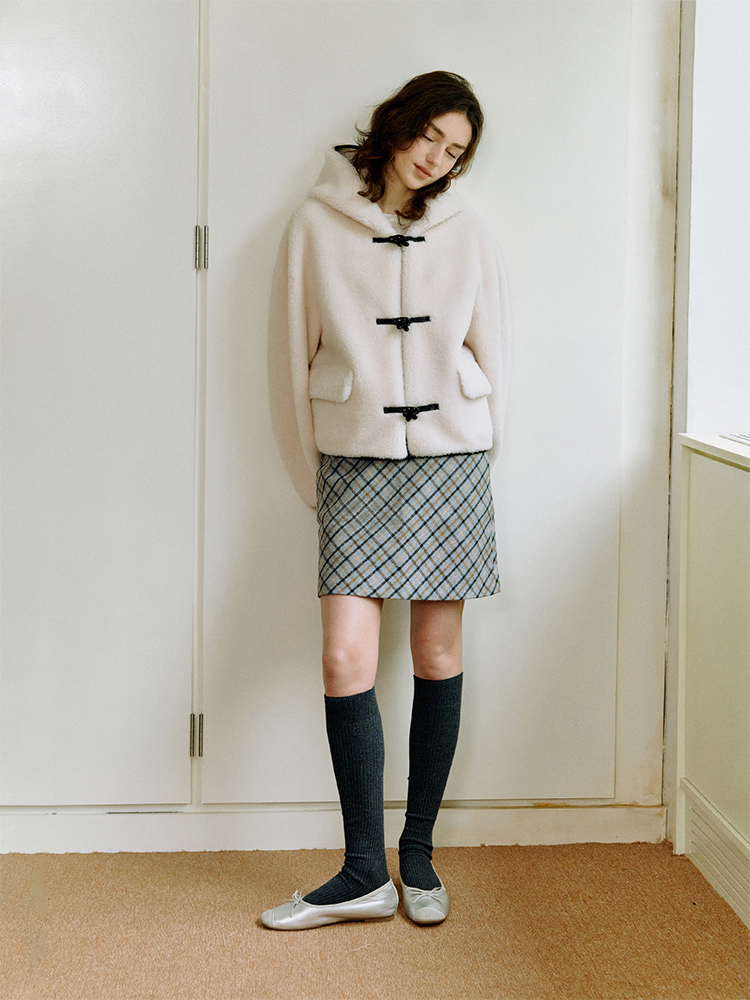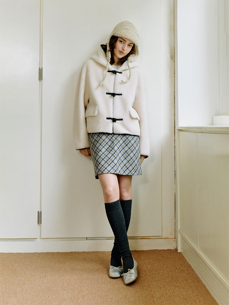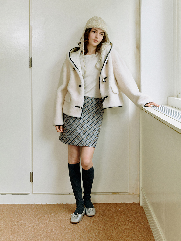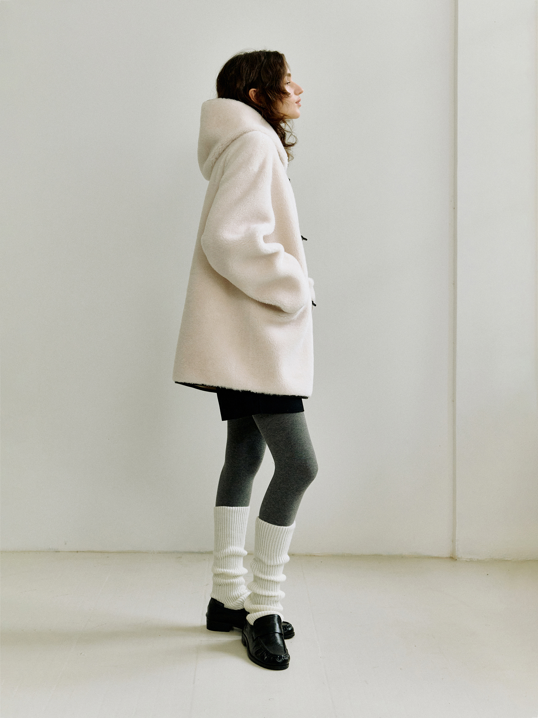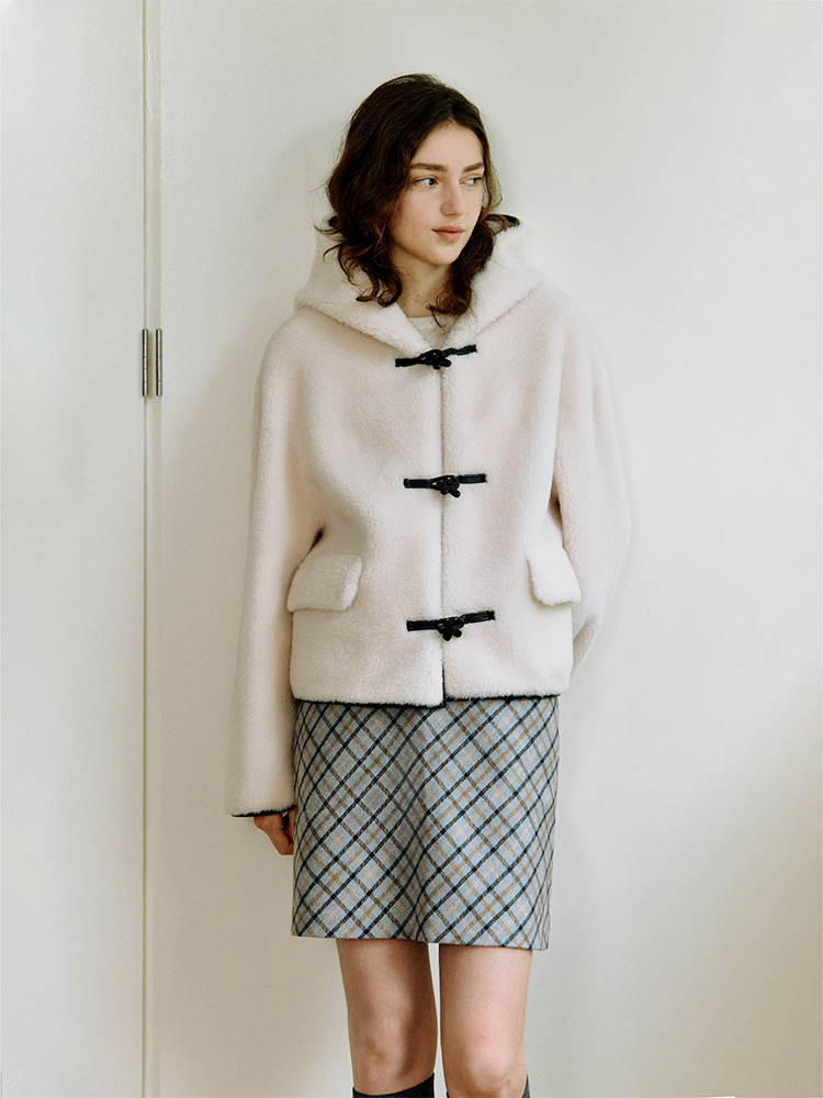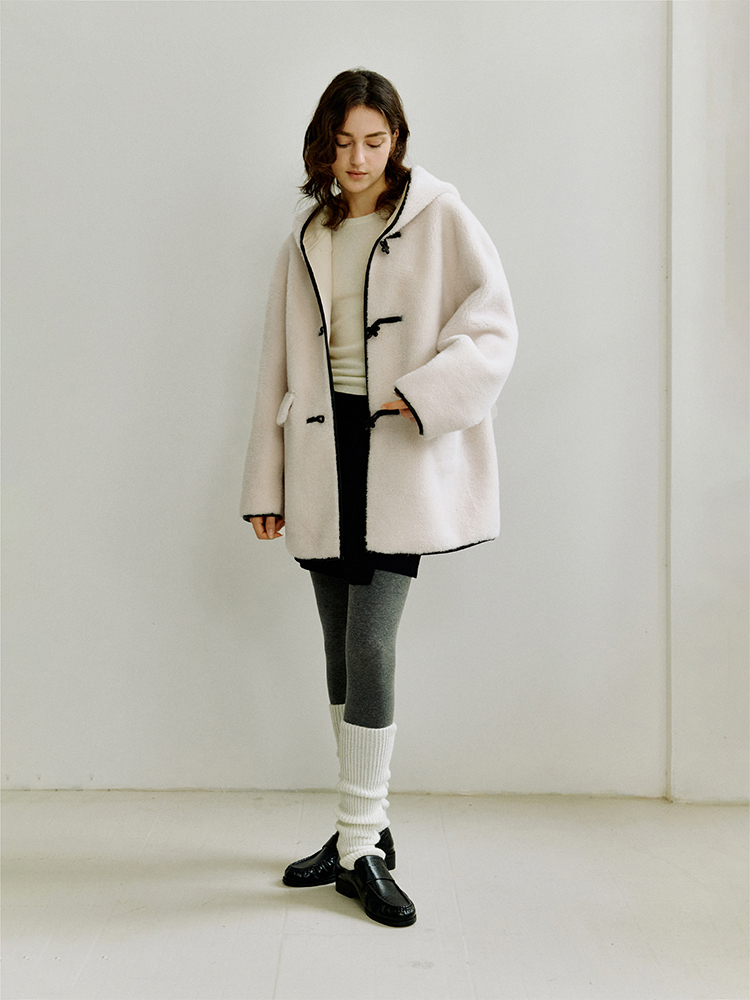 ForPoem 现货 25/FW原创设计黑曜石花朵扣皮毛一体羊羔毛连帽外套