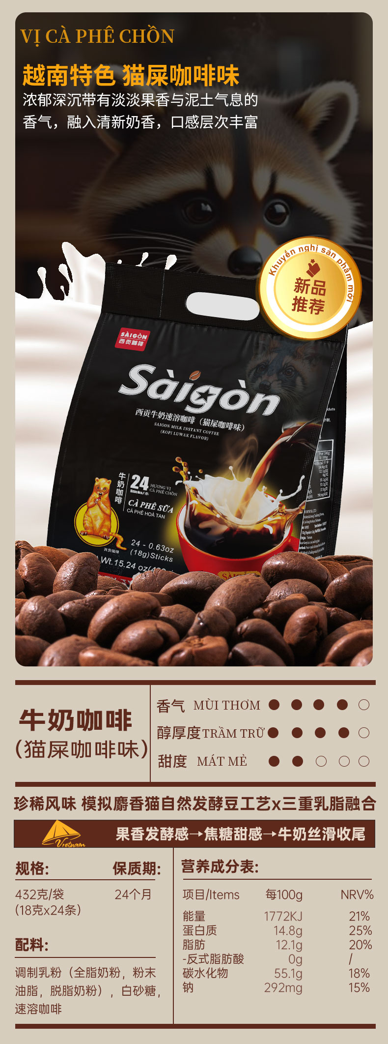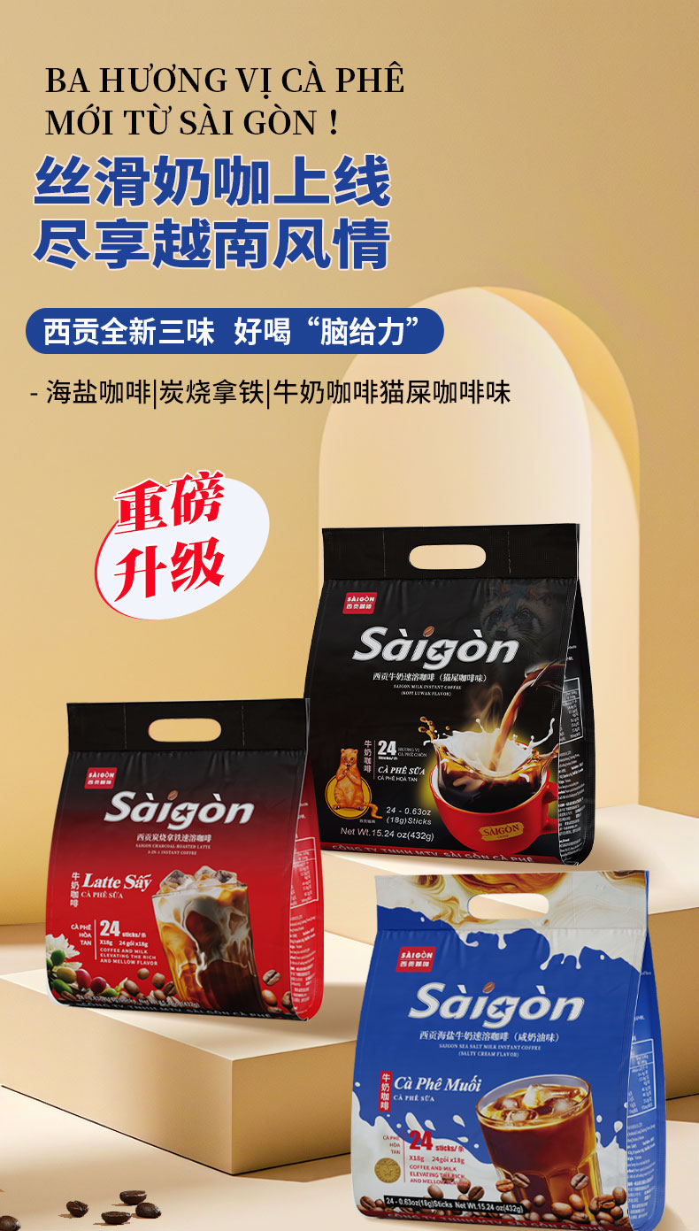 【新品牛奶咖啡】猫屎咖啡味/炭烧拿铁咖啡/海盐牛奶咖啡组合装共72杯