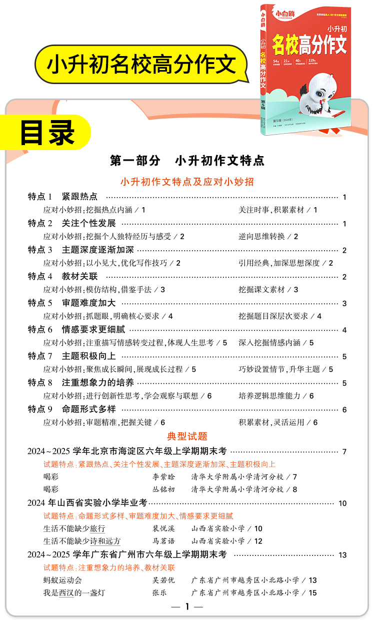 小白鸥2026小升初高分作文 万唯满分范文大全 三四五六年级同步训练 常考素材好词好句好段精选