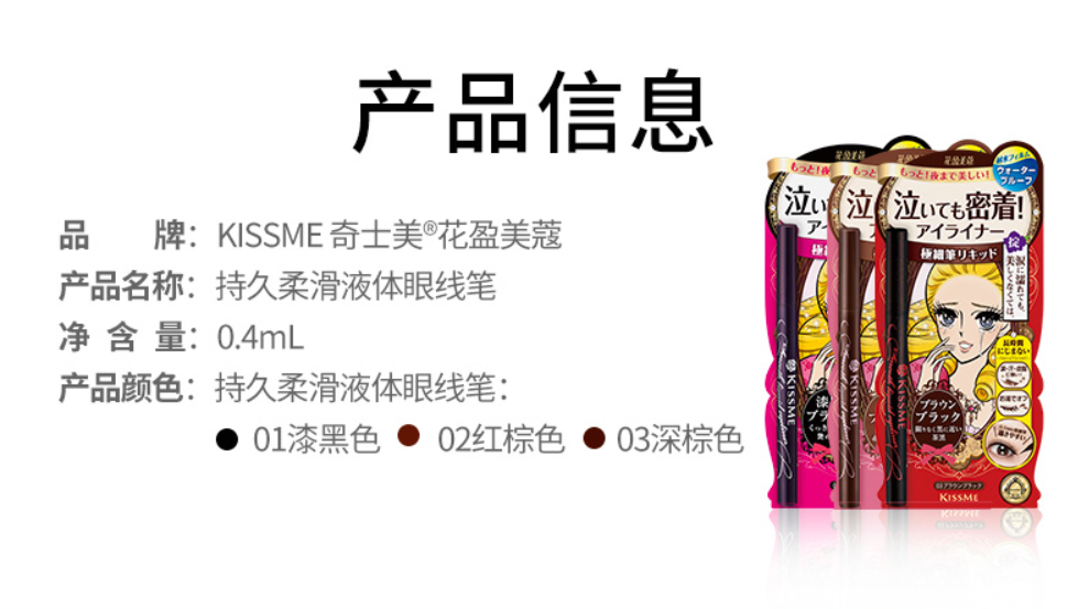 鹿鹿推荐·【KISS ME】耐汗持妆不易晕染极细速干 持久柔滑液体眼线笔