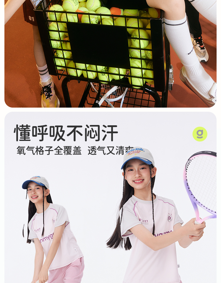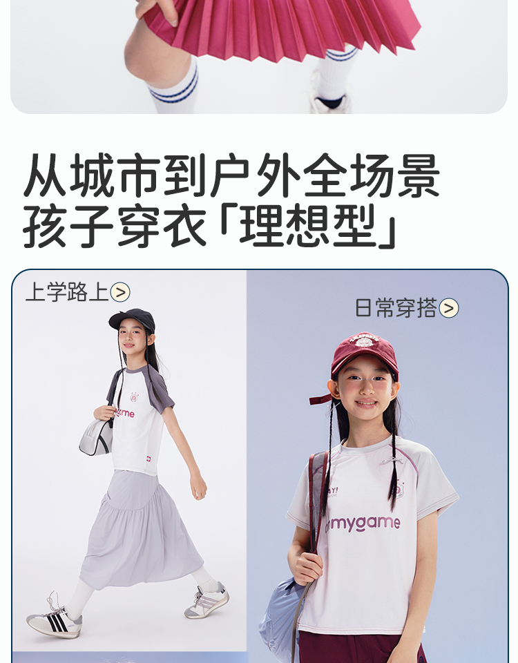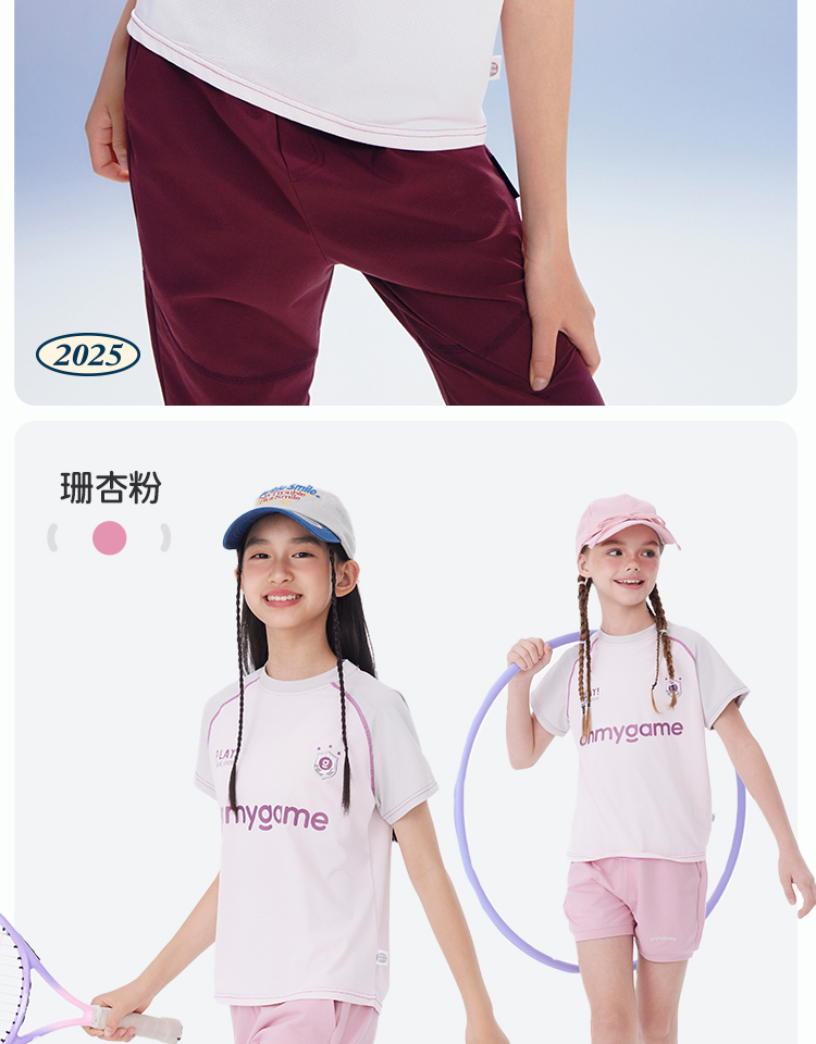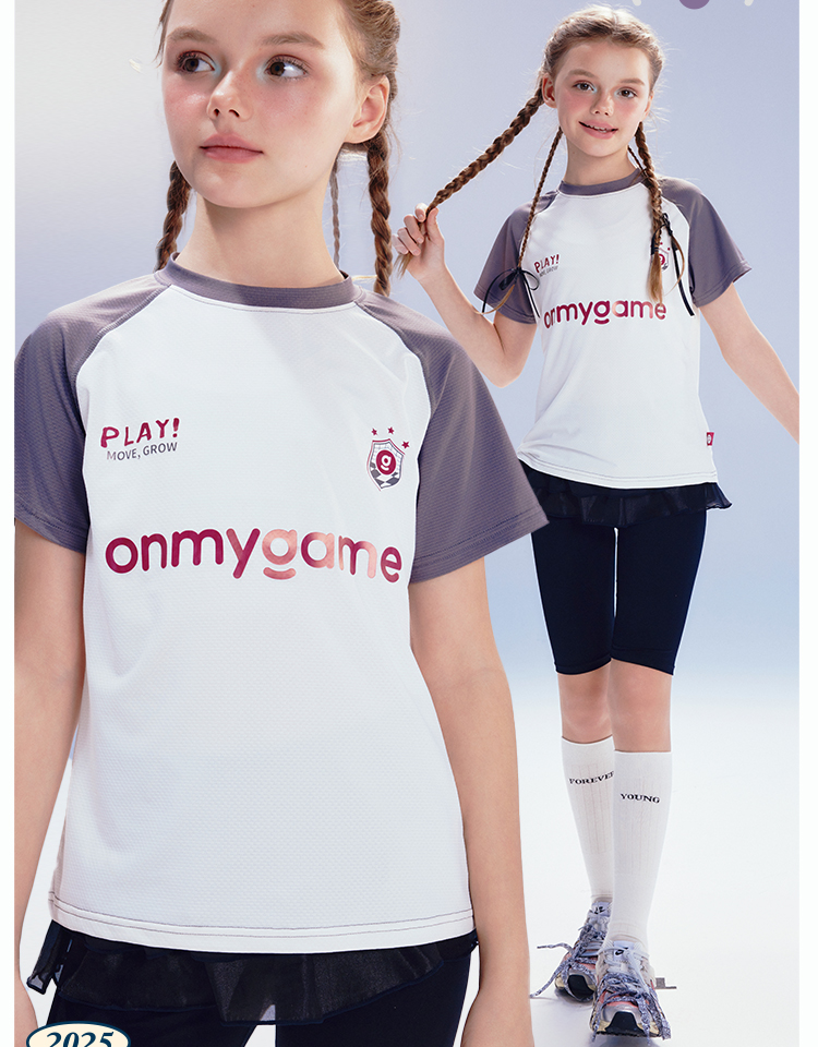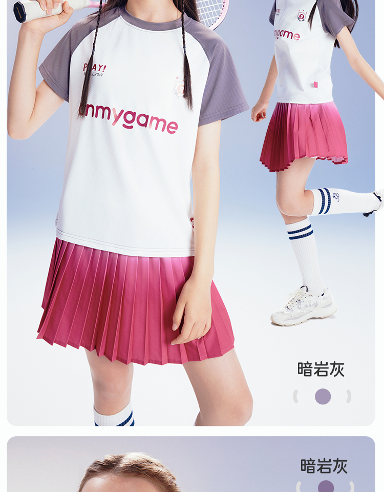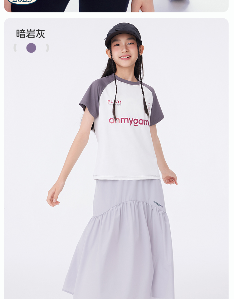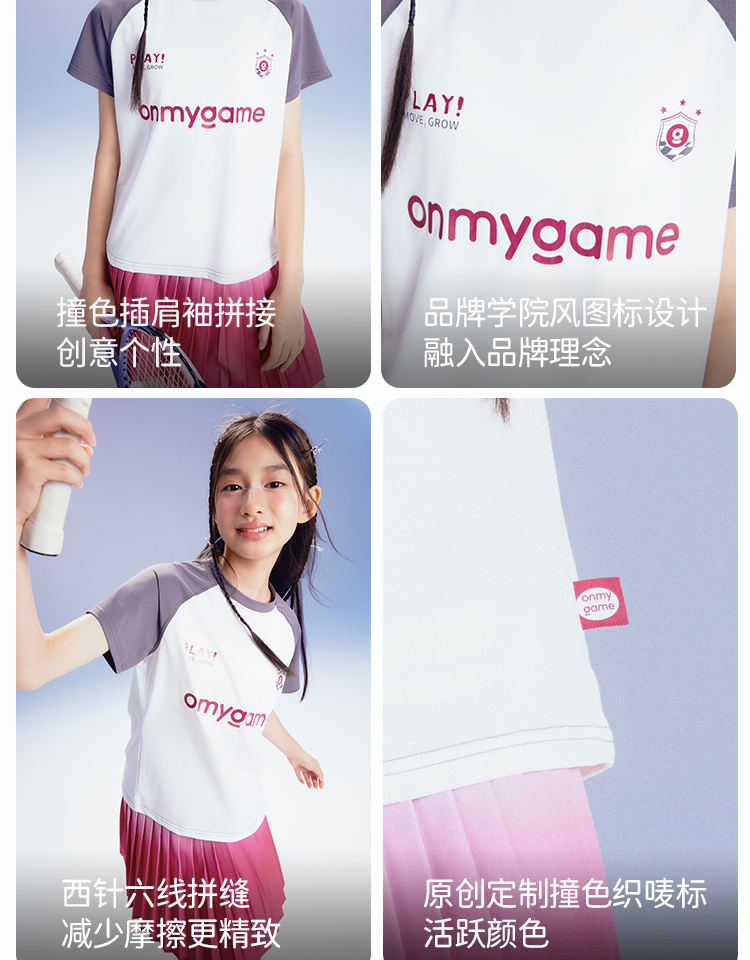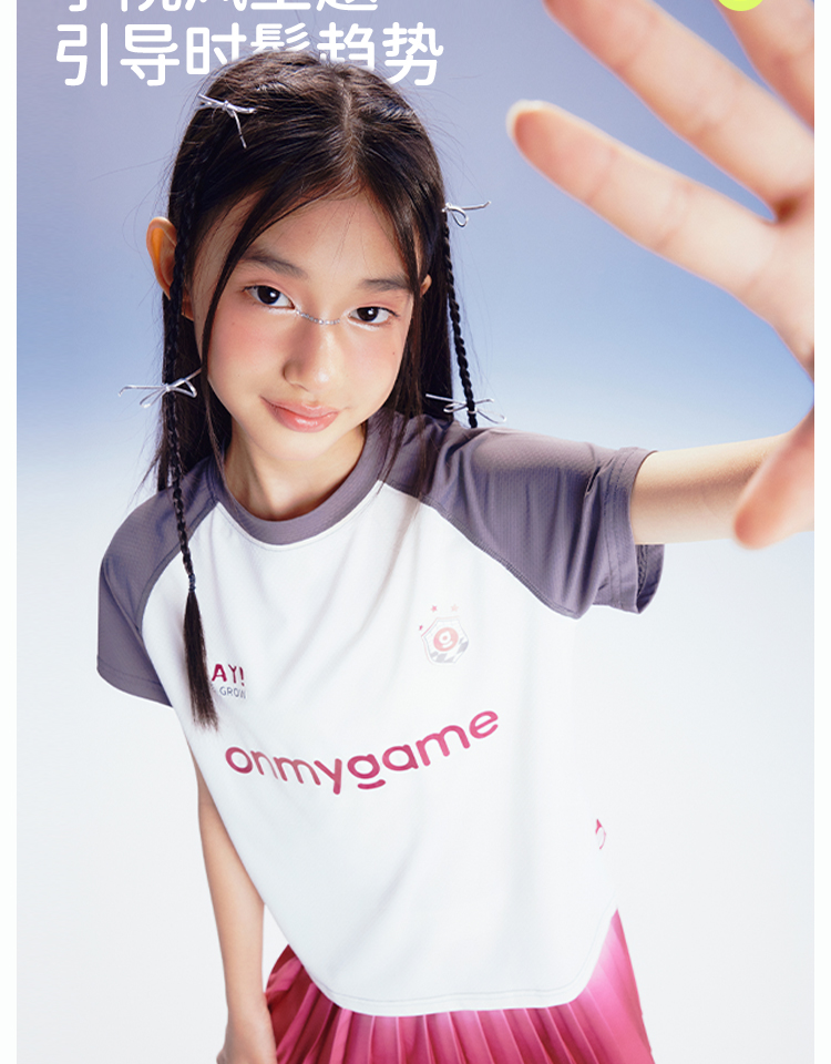 onmygame【轻舞风琴】女童短袖t恤儿童百褶运动上衣夏季2024新款