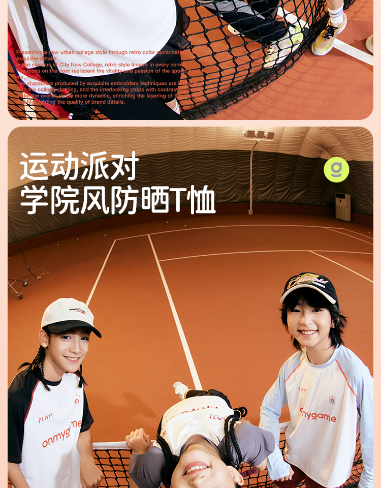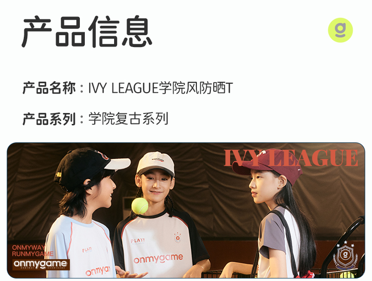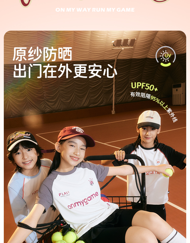 onmygame【运动派对】男女童学院风防晒T恤儿童插肩短袖夏季新款