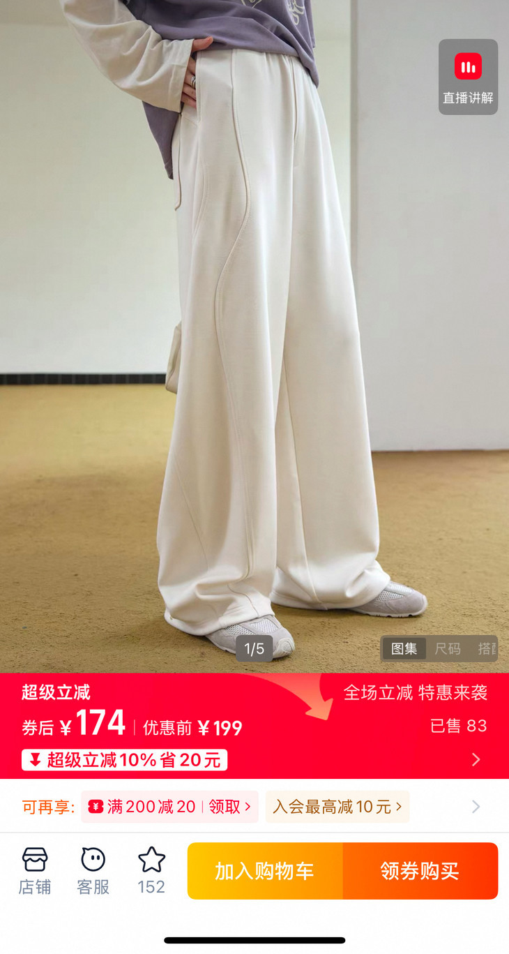 某宝旗舰店明码标价199元一条,即便用了优惠券,券后也要174元。