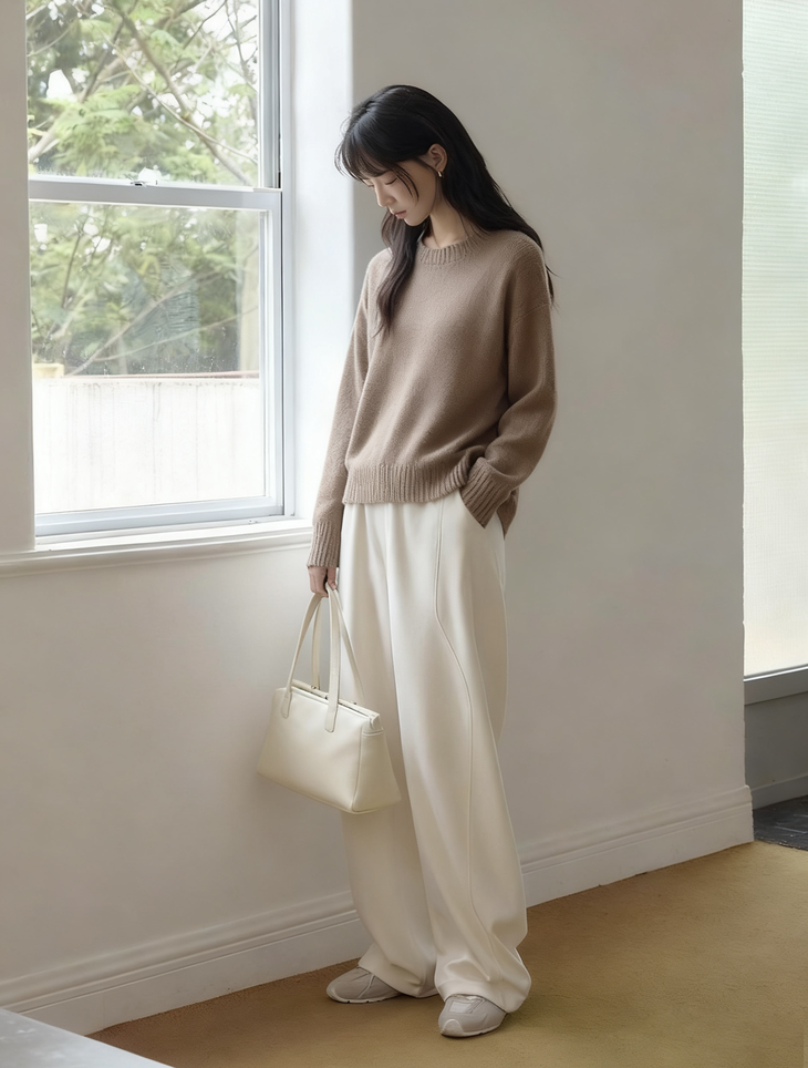 搭配软糯毛衣: 无论是燕麦色、驼色还是莫兰迪色系的毛衣,与它搭配都能瞬间营造出温柔可人的韩系小姐姐范儿。