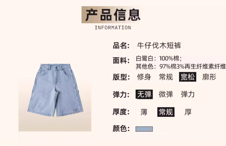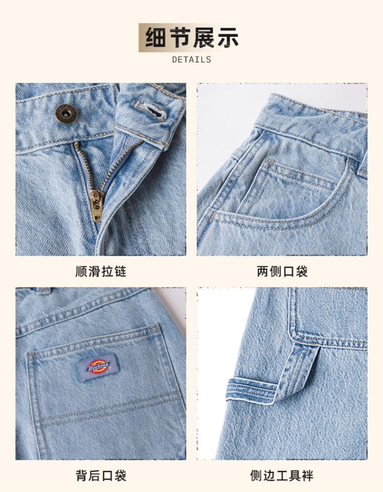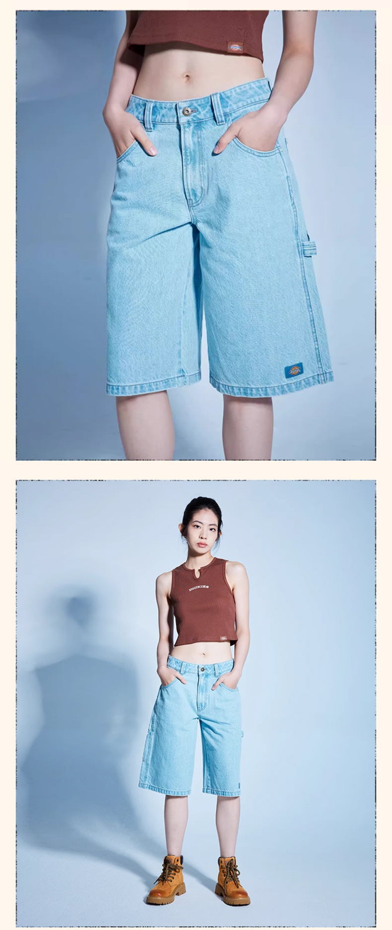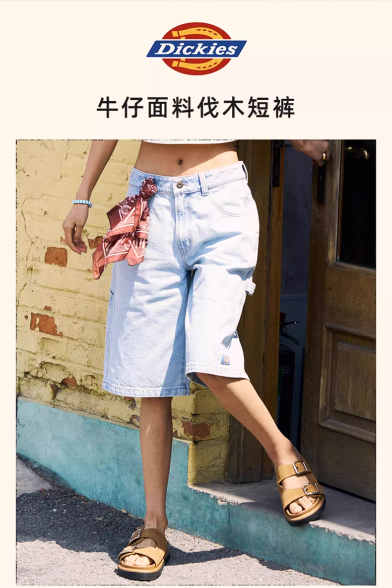 Dickies2025夏新款女式无弹牛仔面料伐木短裤 宽松工装版型 DK0A87TK
