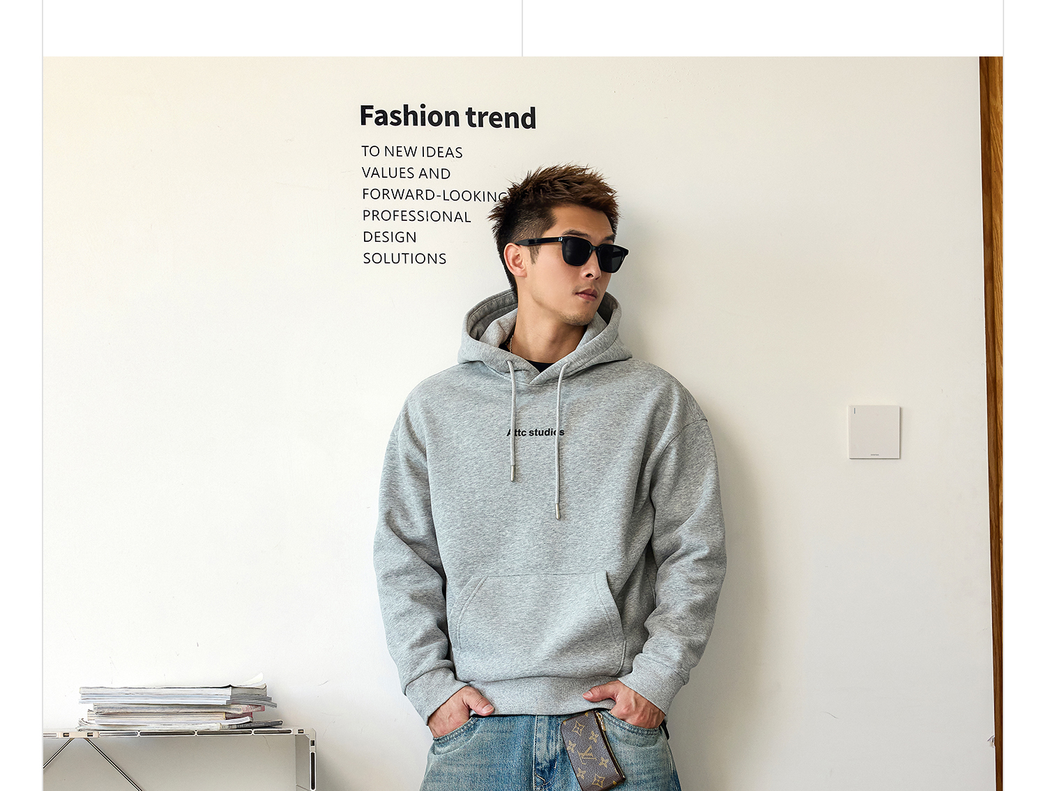 徐太浪【440g混纺 字母印花】连帽卫衣男秋冬学院风运动帽衫外套