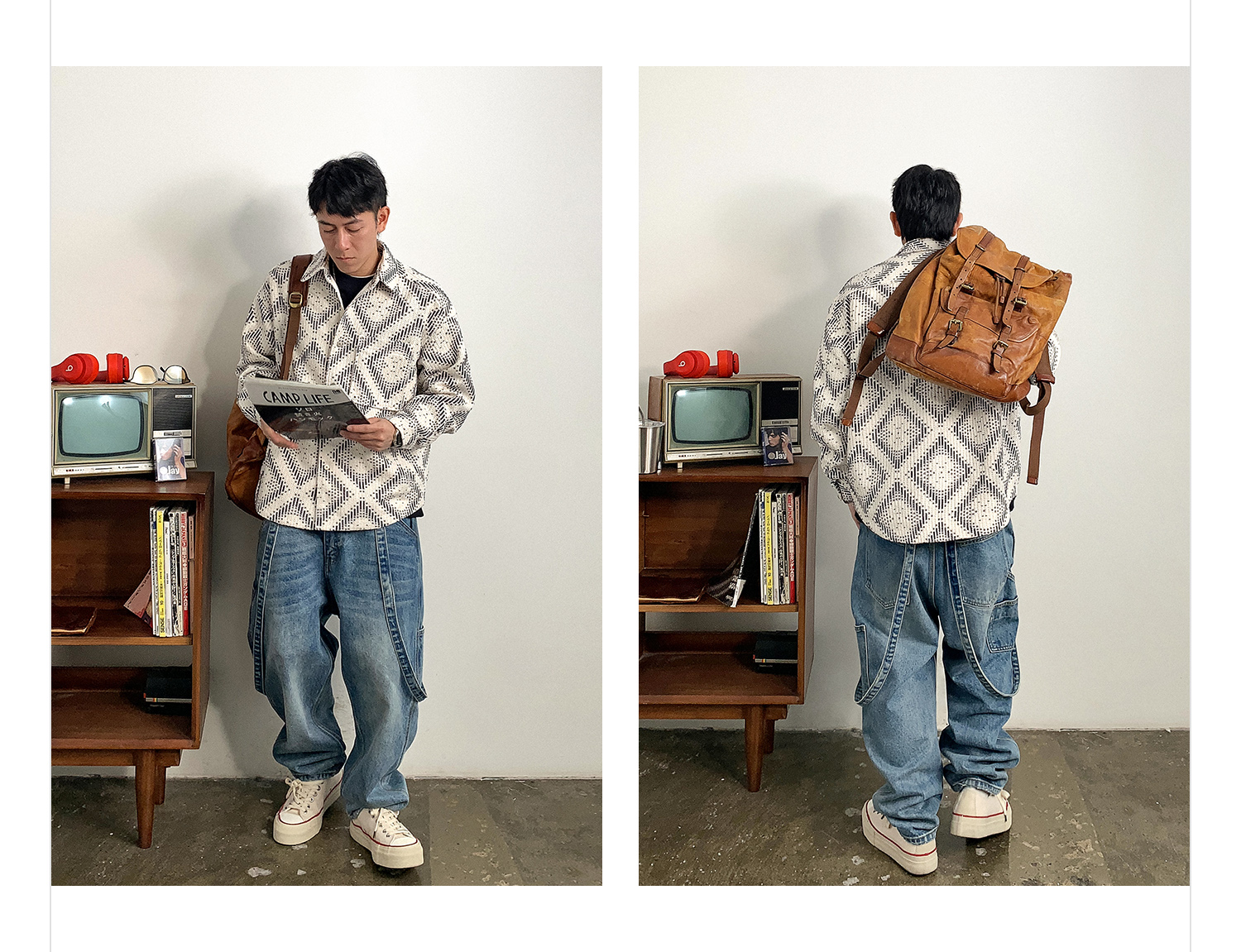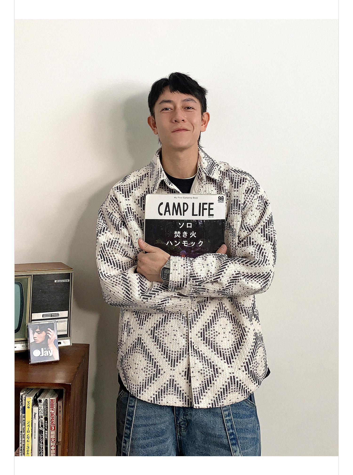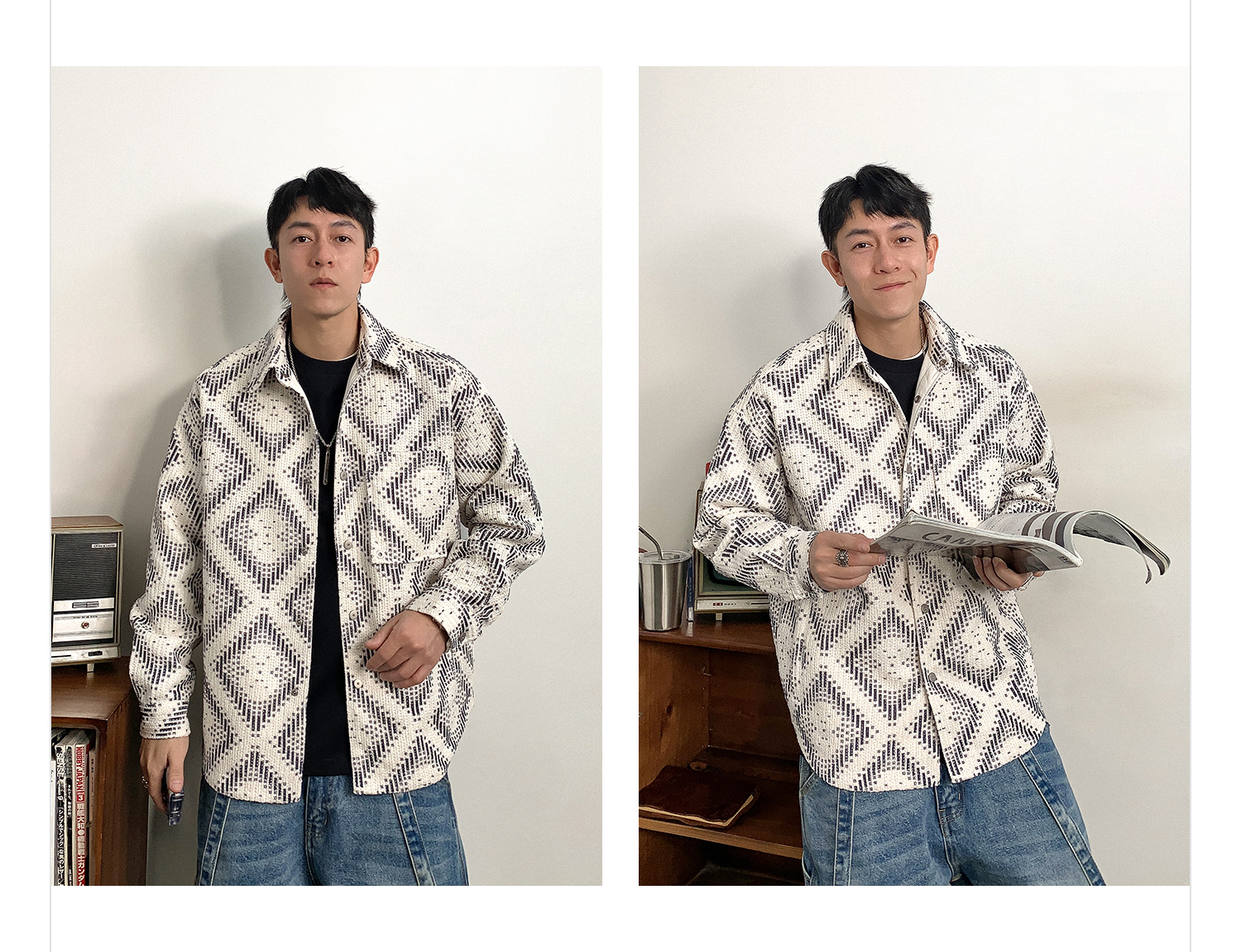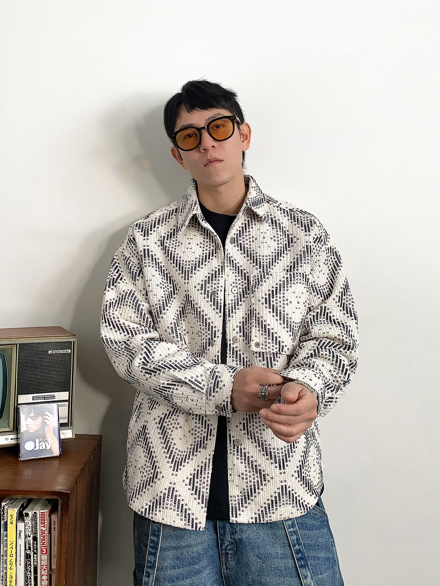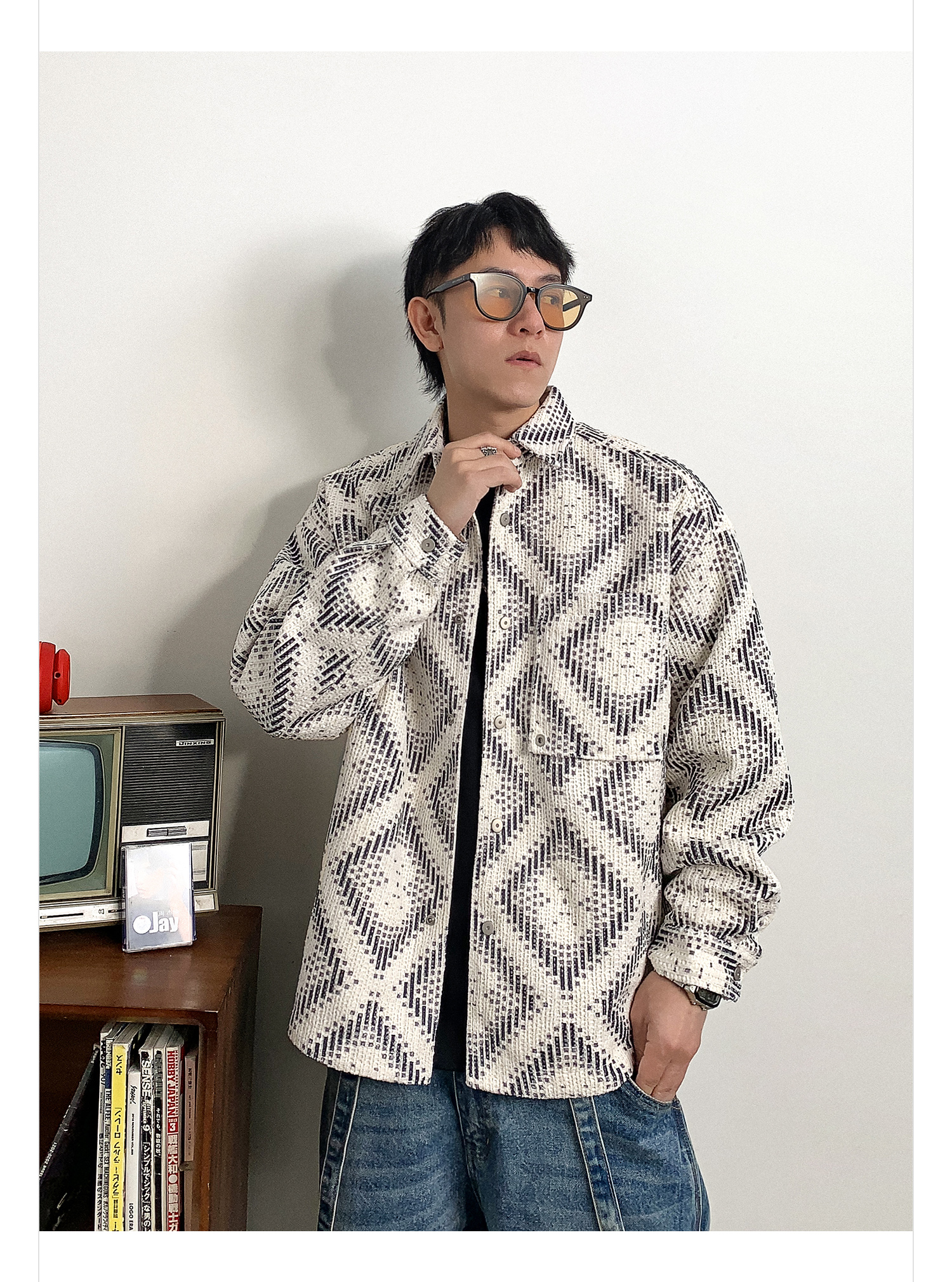 徐太浪春季新款菱格提花休闲夹克男韩版小香风时尚男装翻领外套潮