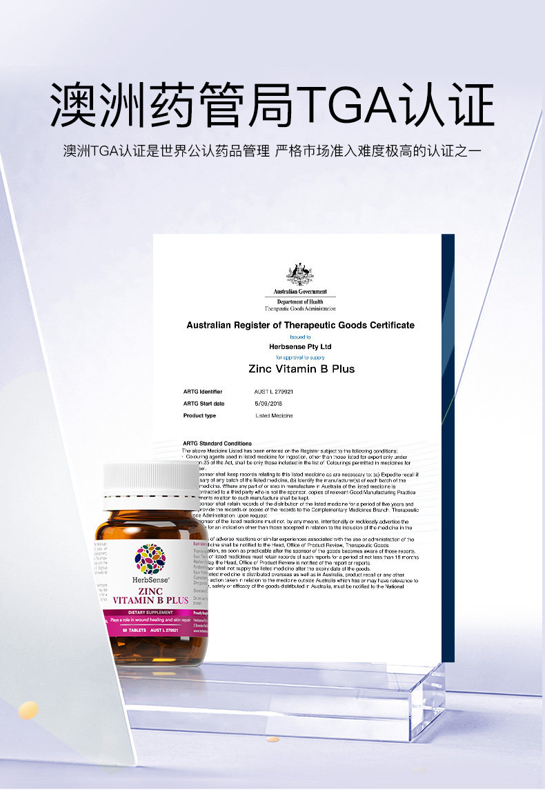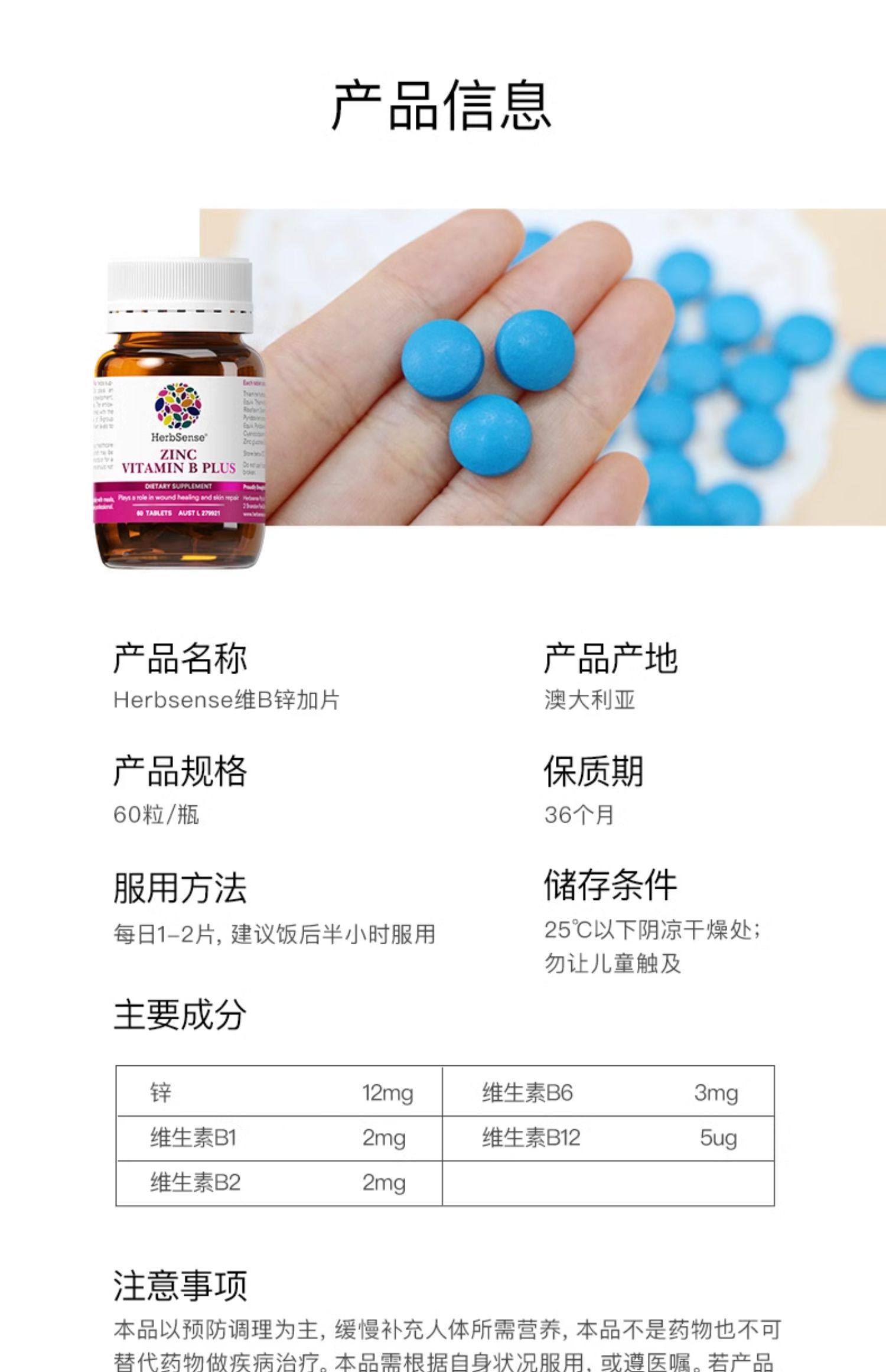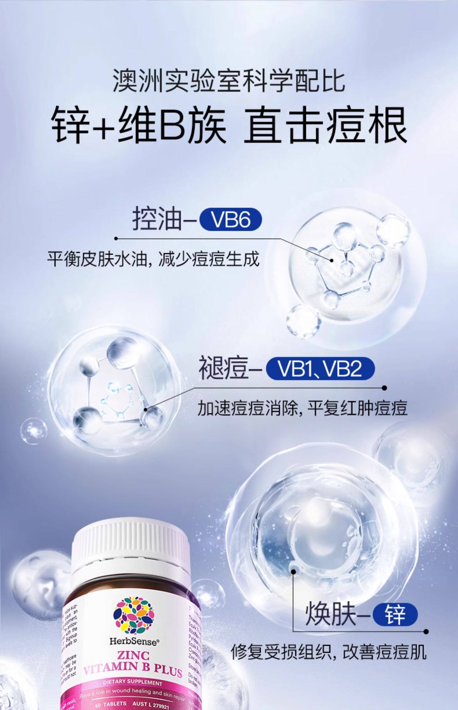 Herbsense贺柏圣补锌褪痘片小蓝片B族维生素b6b2控油内服调淡痘印