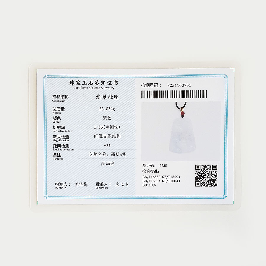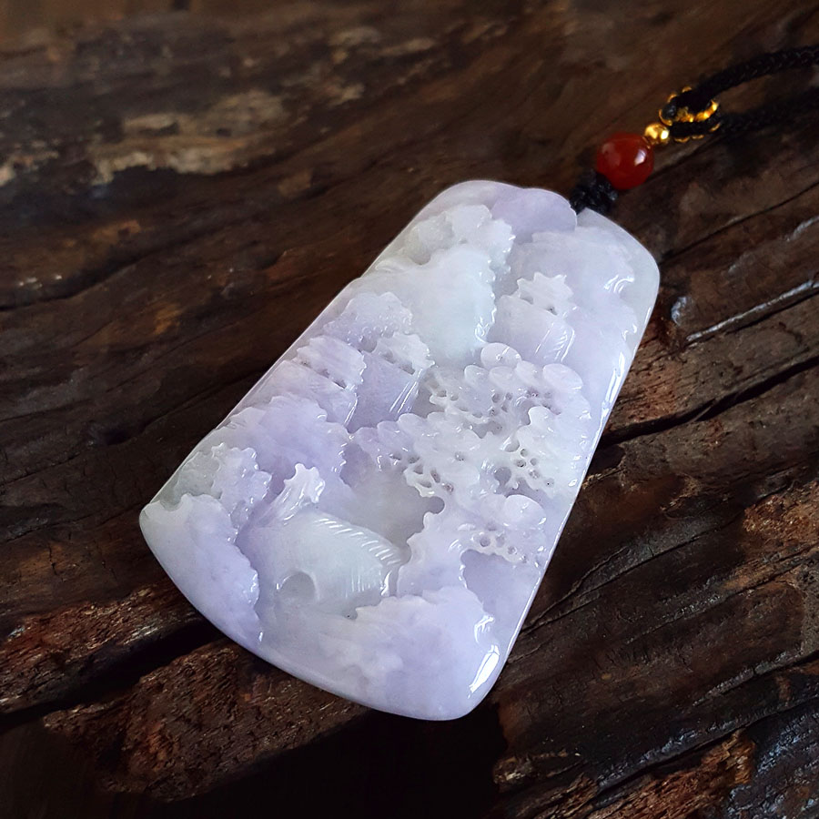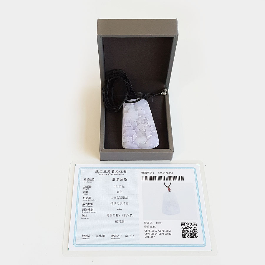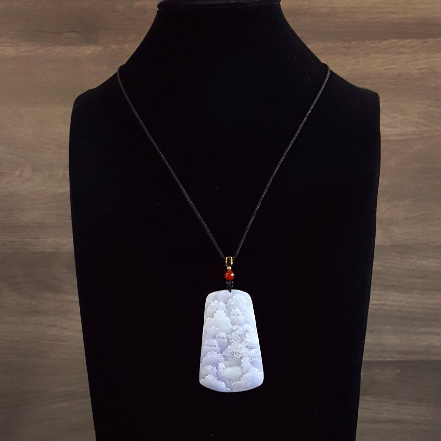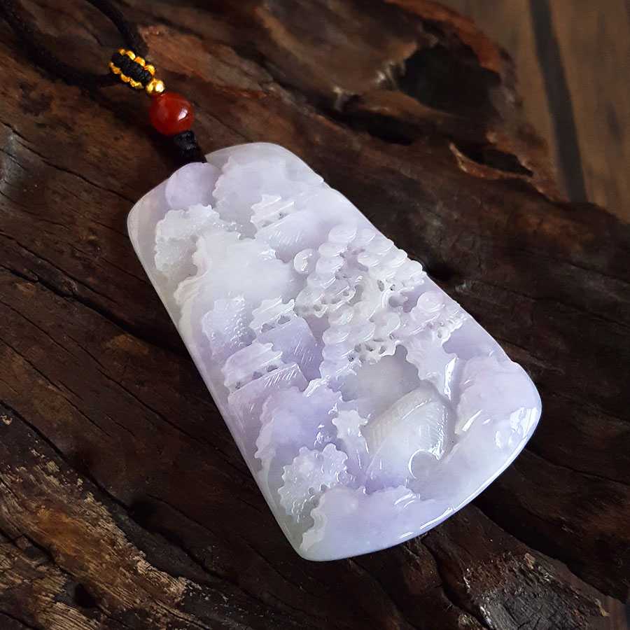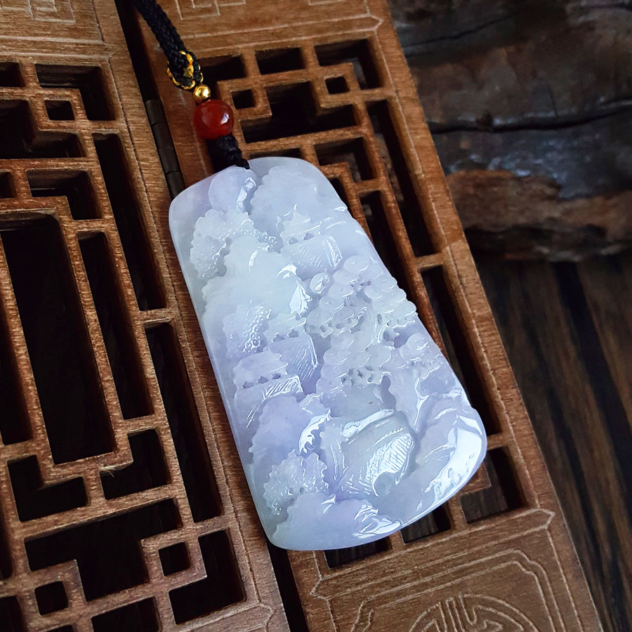 名称 | 天然细腻糯种紫罗兰亭台松树平安无事牌翡翠吊坠项链 |