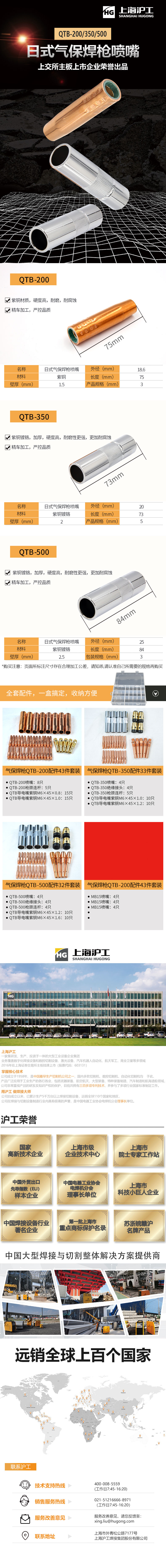 上海沪工气保焊枪配件保护套喷嘴QTB-350喷嘴2.0mm【1只装】【3只装】QTB-350喷嘴2.5【3只装】