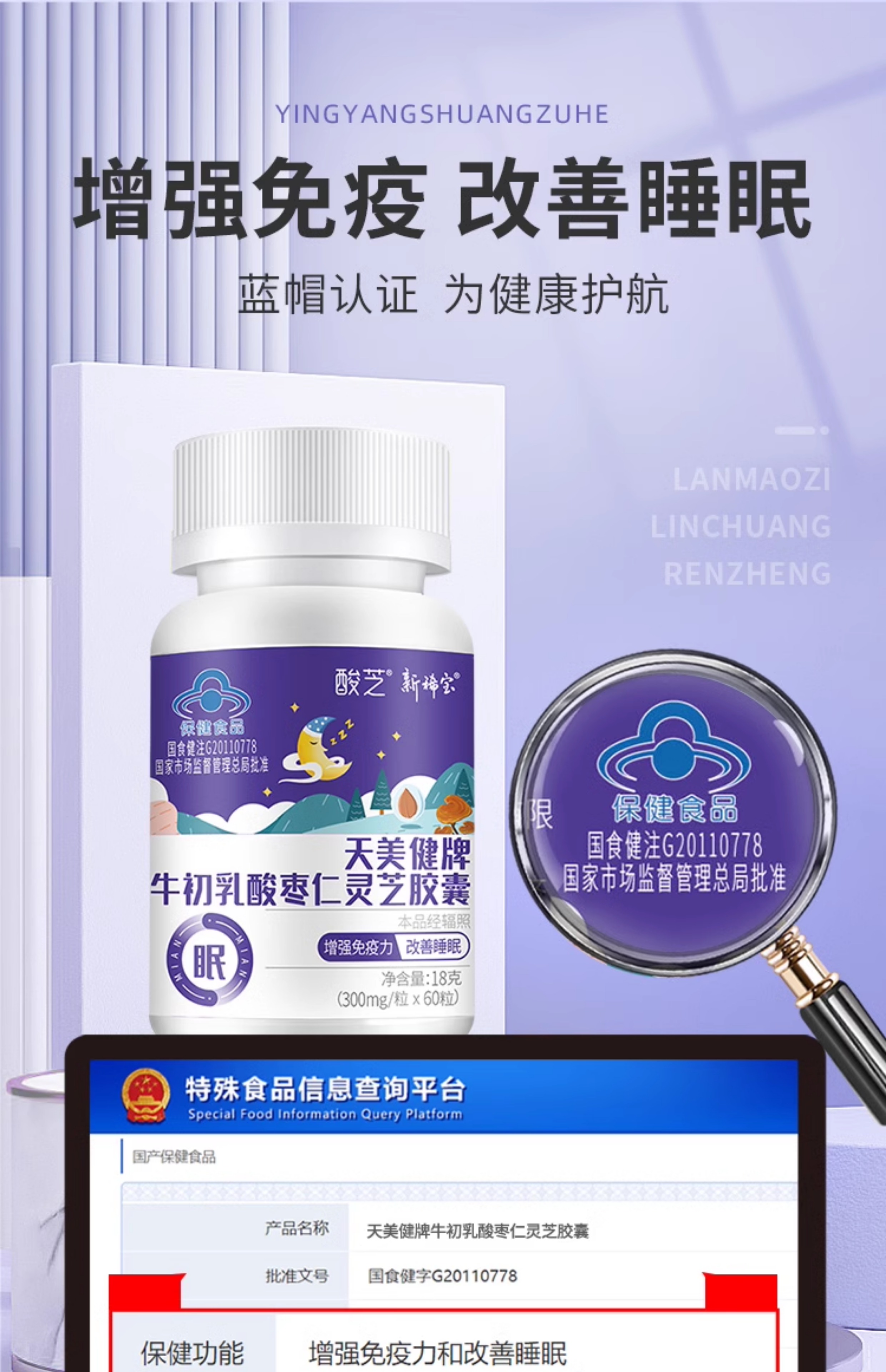 酸芝益力采宁维改善睡c眠胶囊免疫球蛋白旗舰枣仁片褪退助黑素瓶