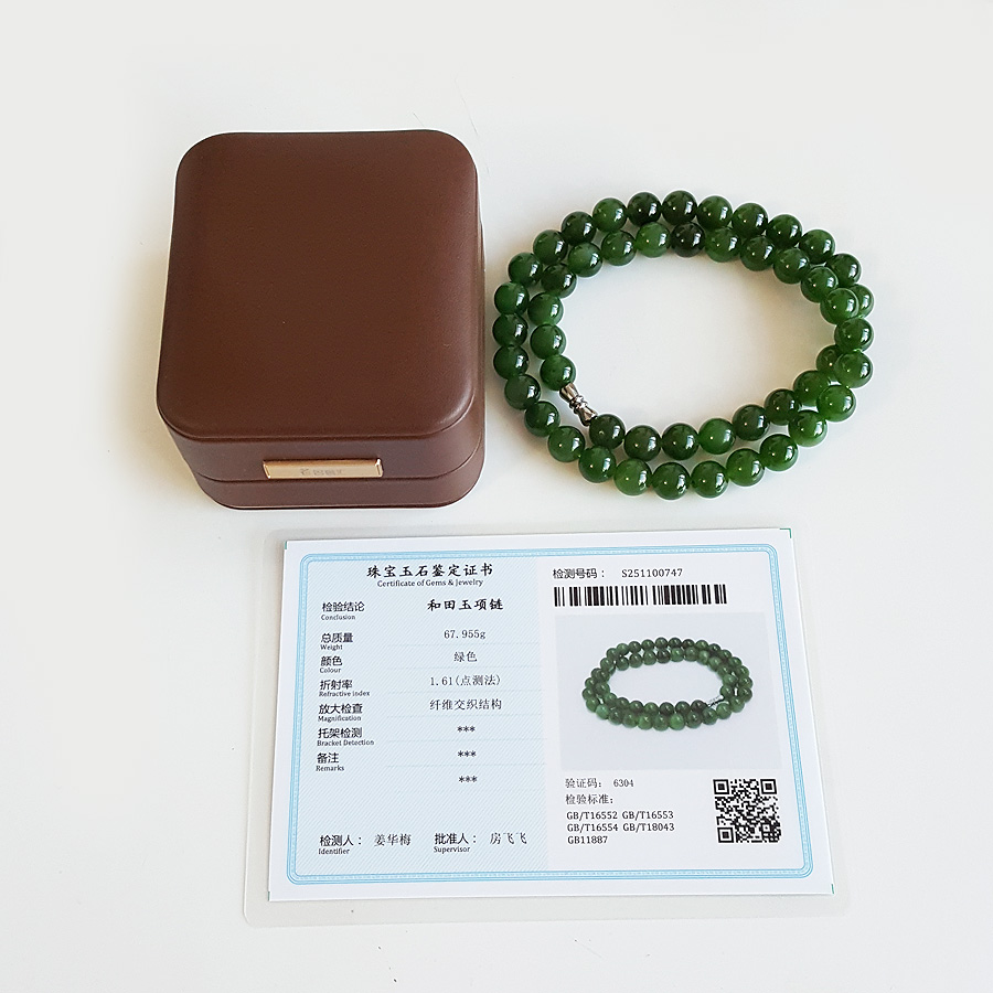 【天然正品】天然精品俄料近无黑点细腻菠菜绿约9.5MM和田玉碧玉珠串项链9.5MM(皆取最大值)链长:48CM女士111125NJS14