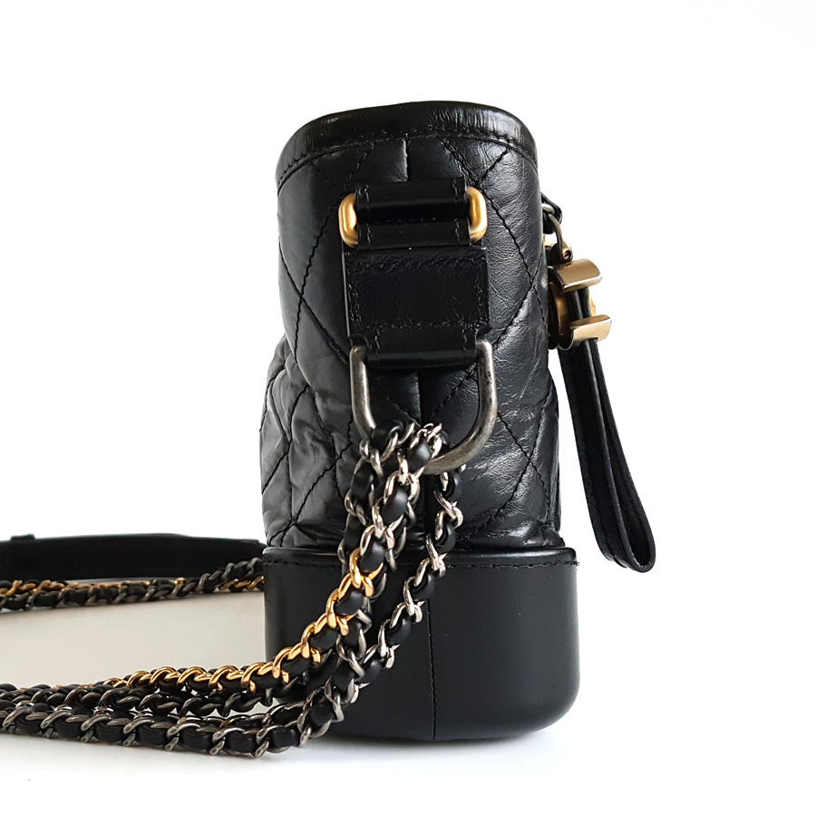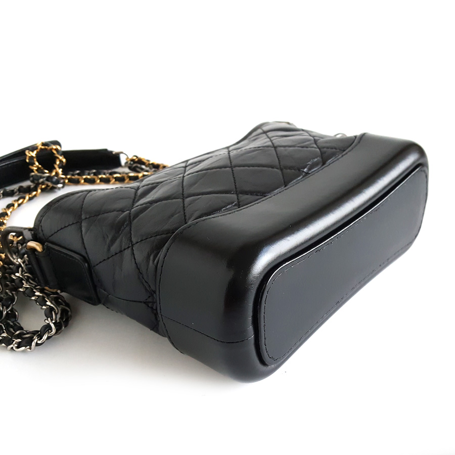 【95新】CHANEL香奈儿流浪包A91810Y6147794305小号黑金菱格纹流浪包单肩斜挎包女士 071225AK10