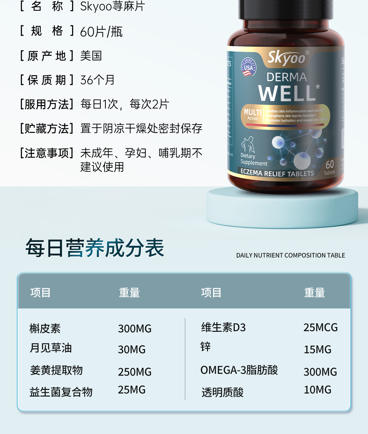 Skyoo美国进口高端科技生物素防脱发护黑复合片维生素B族男女通用【3瓶装】