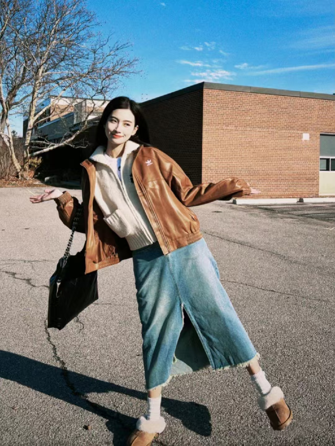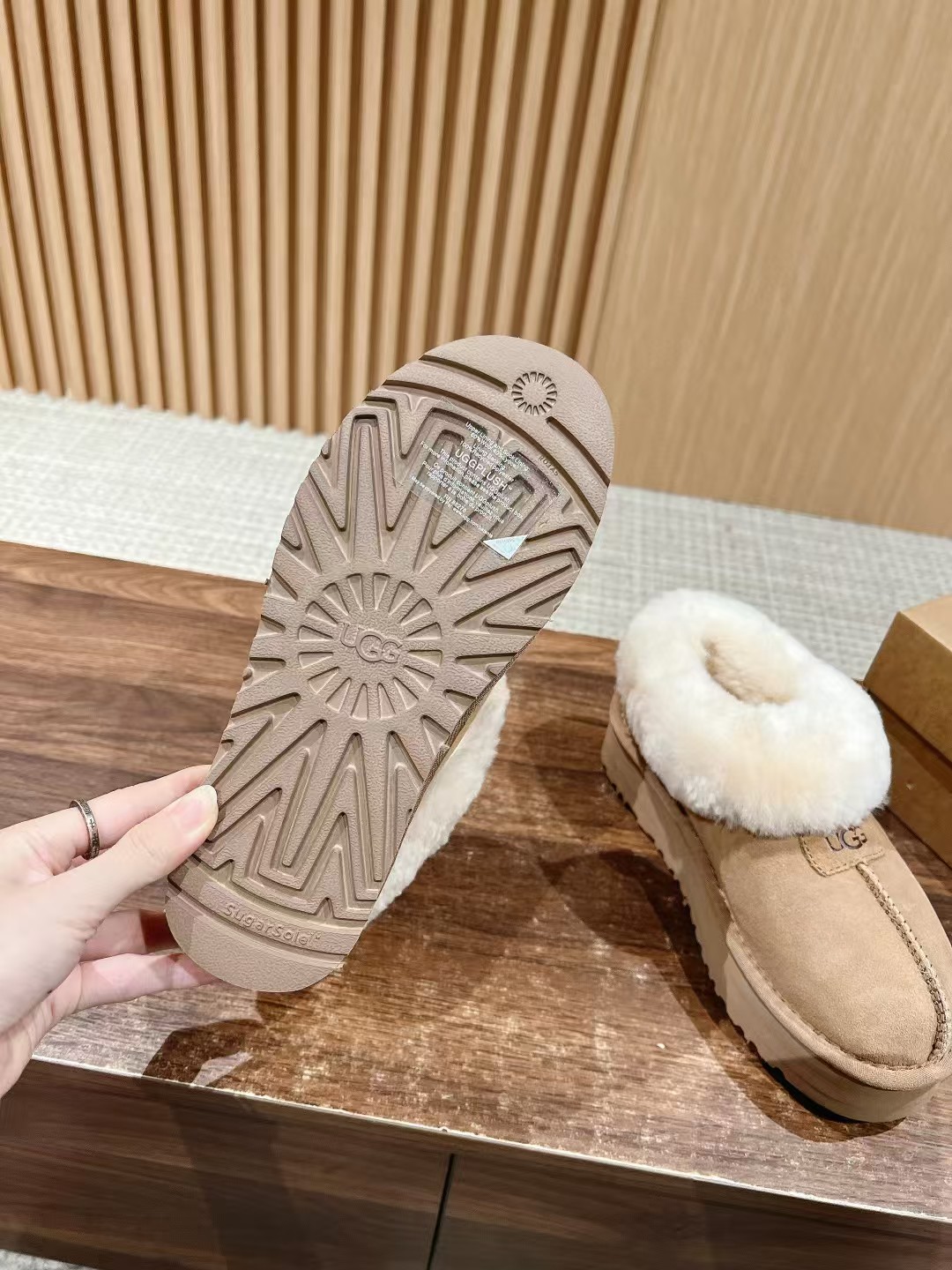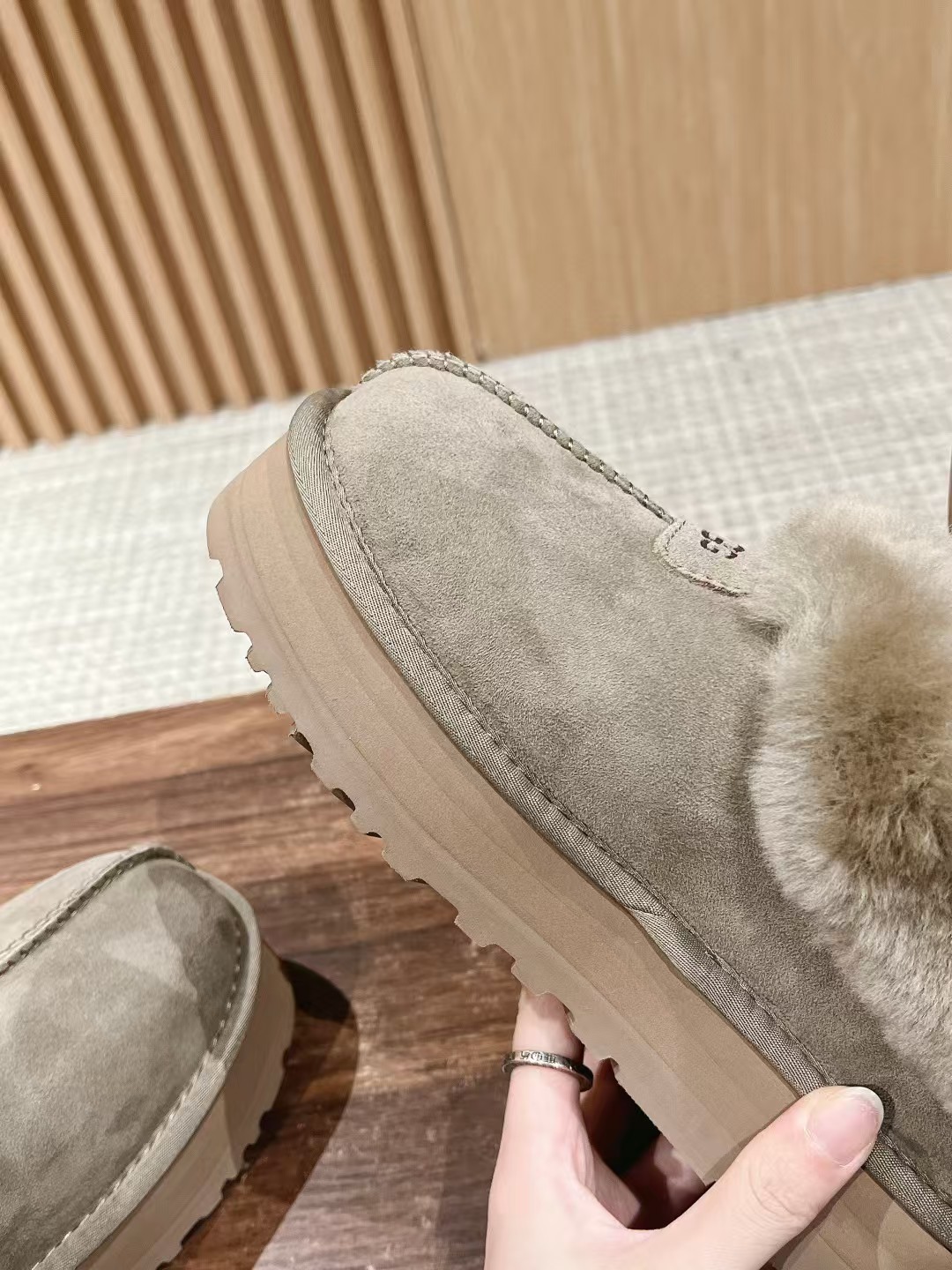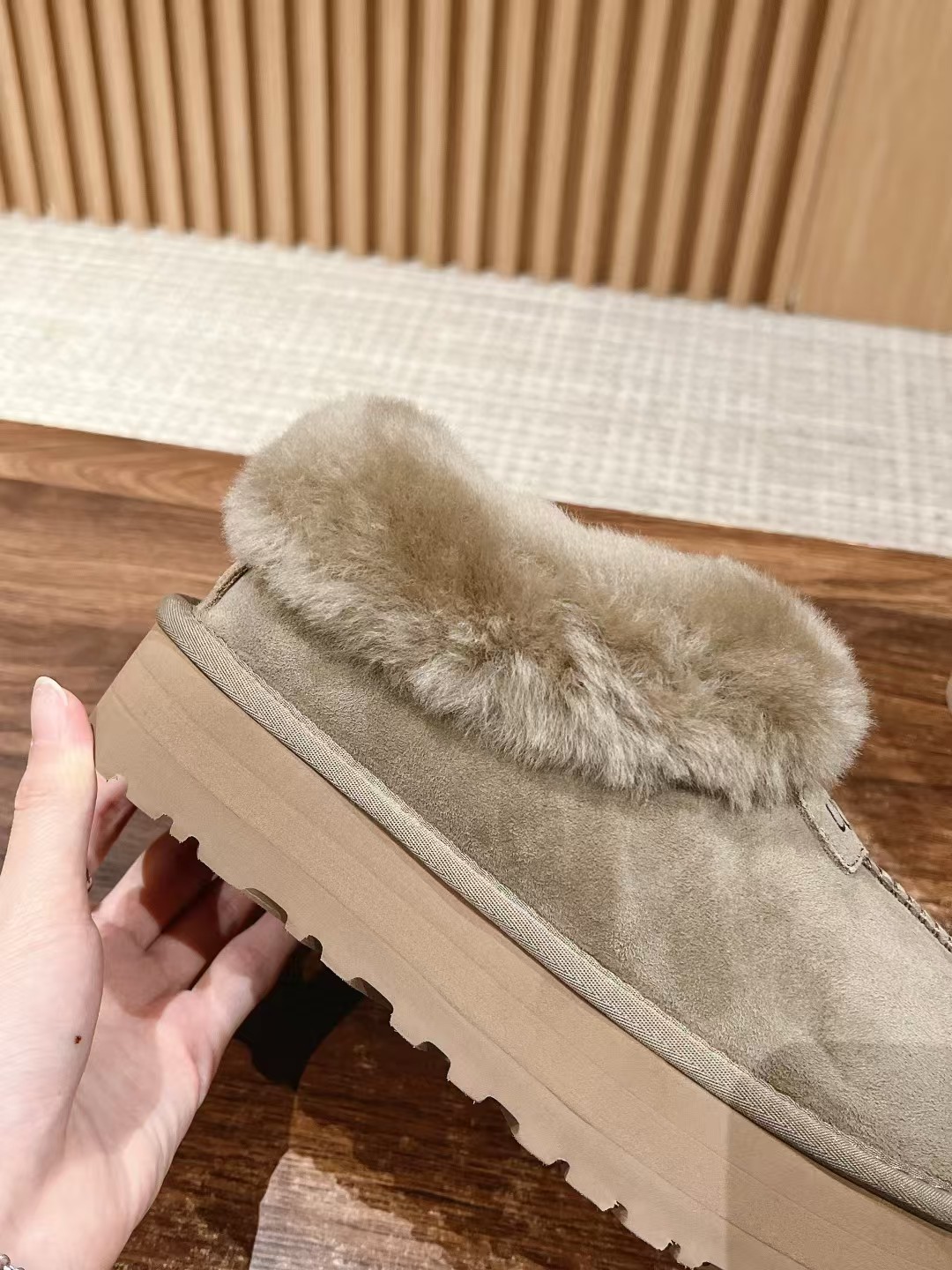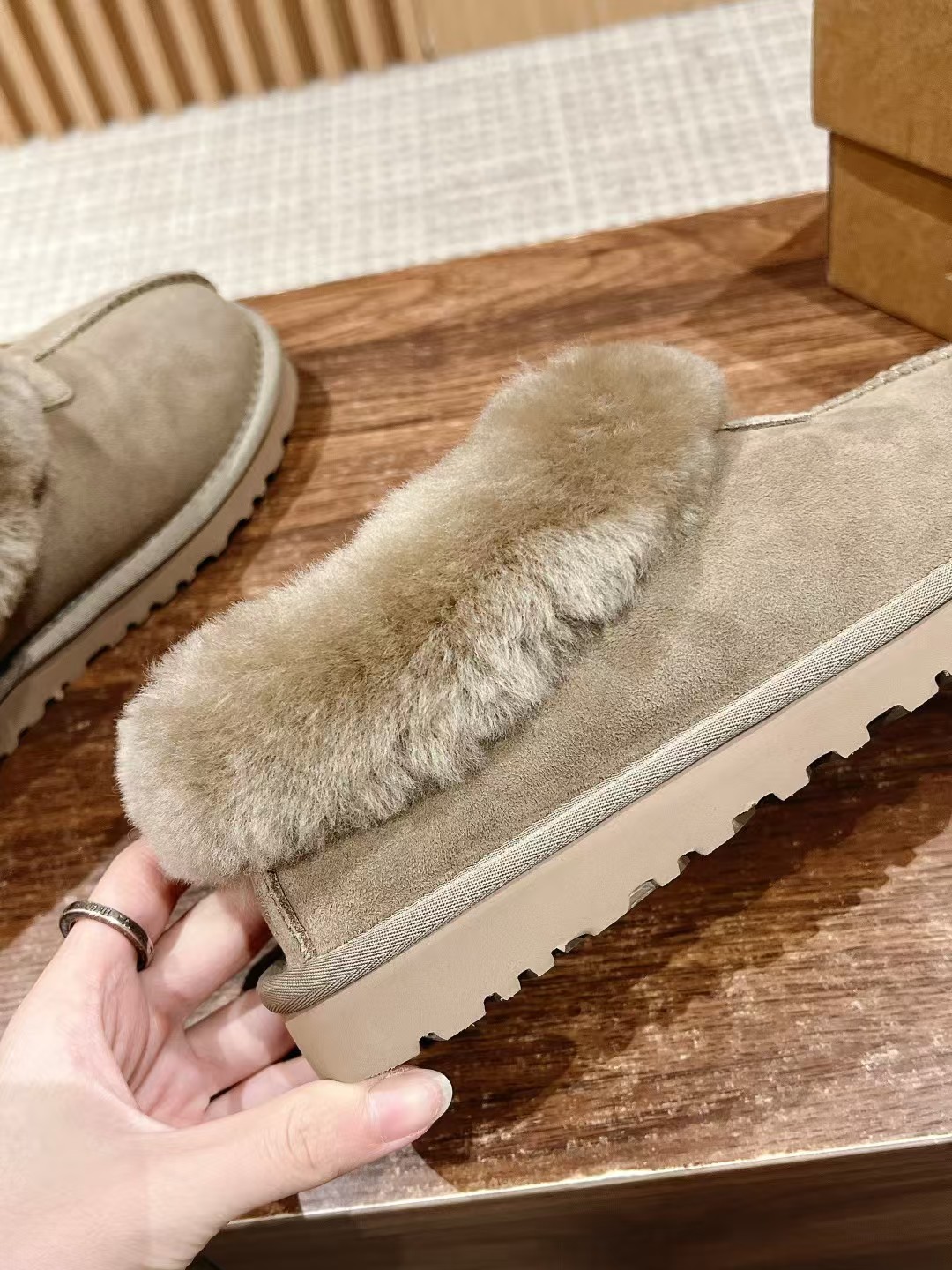 这款一看就能感觉到秋冬的氛围感,有点美式的感觉,毛茸茸的很舒服,温暖又时髦。皮毛一体 隆丰一级 eva 太阳花大底