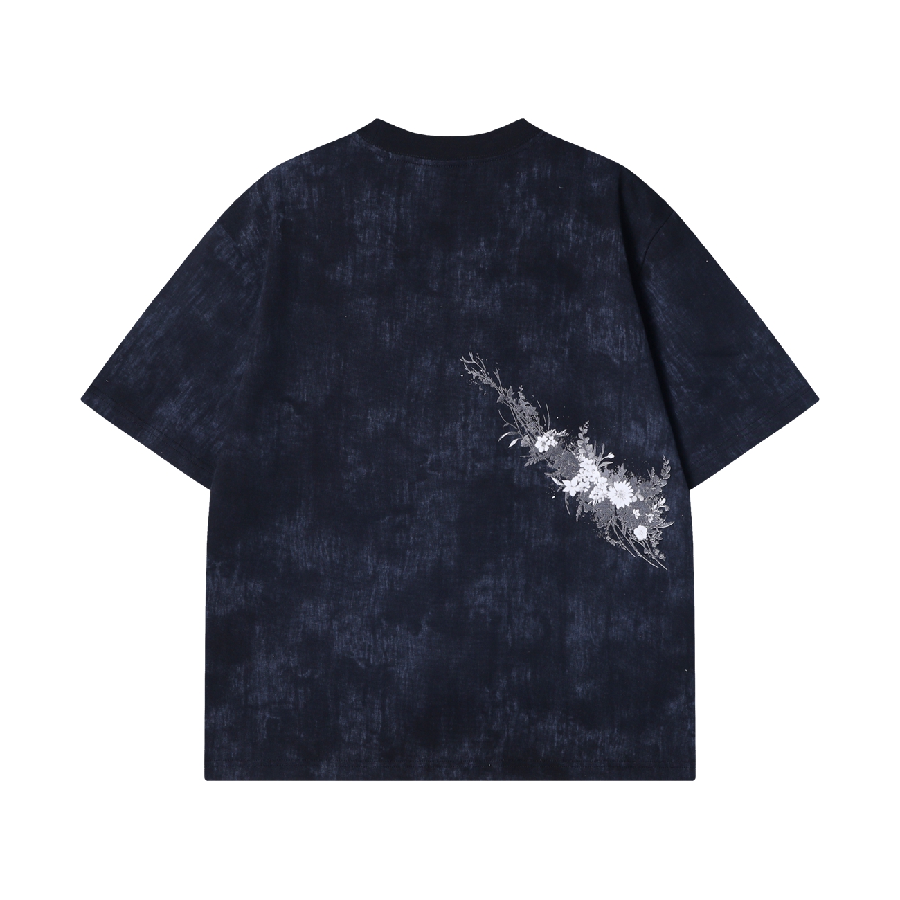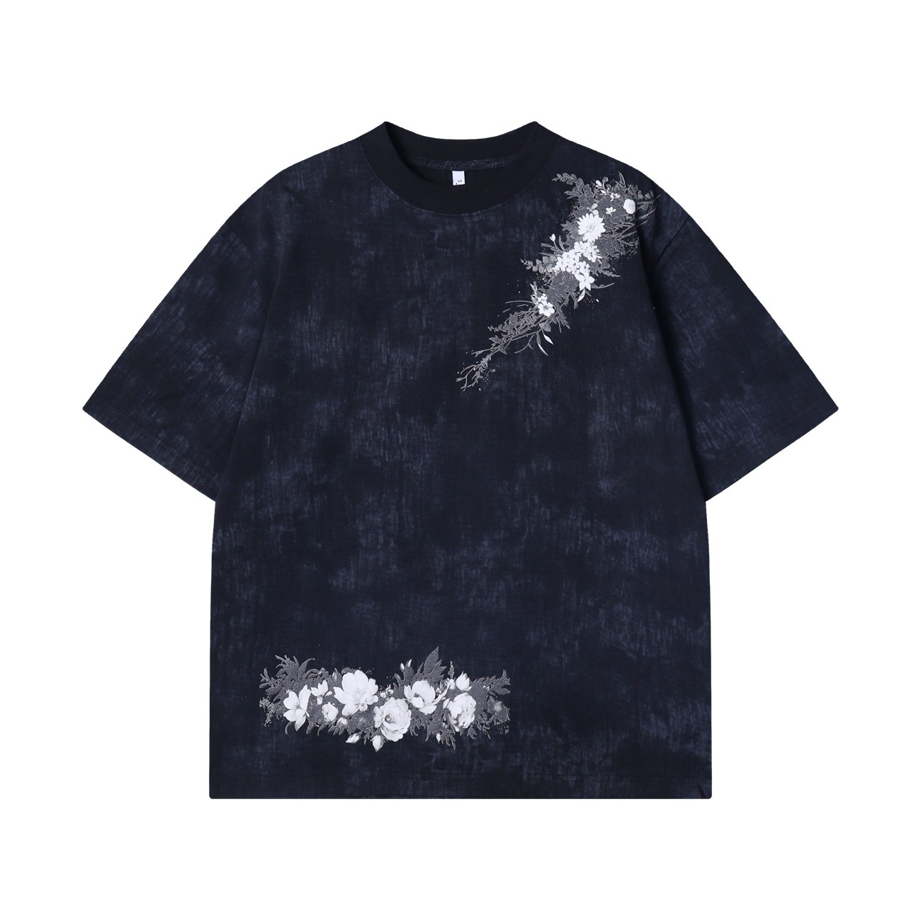 T3033夏季高级感新款美式扎染印花花卉圆领短袖T恤复古高街套头上衣