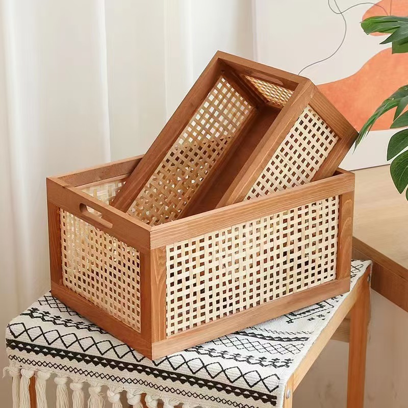 【3色6种规格可选】娜家藤编实木收纳筐
